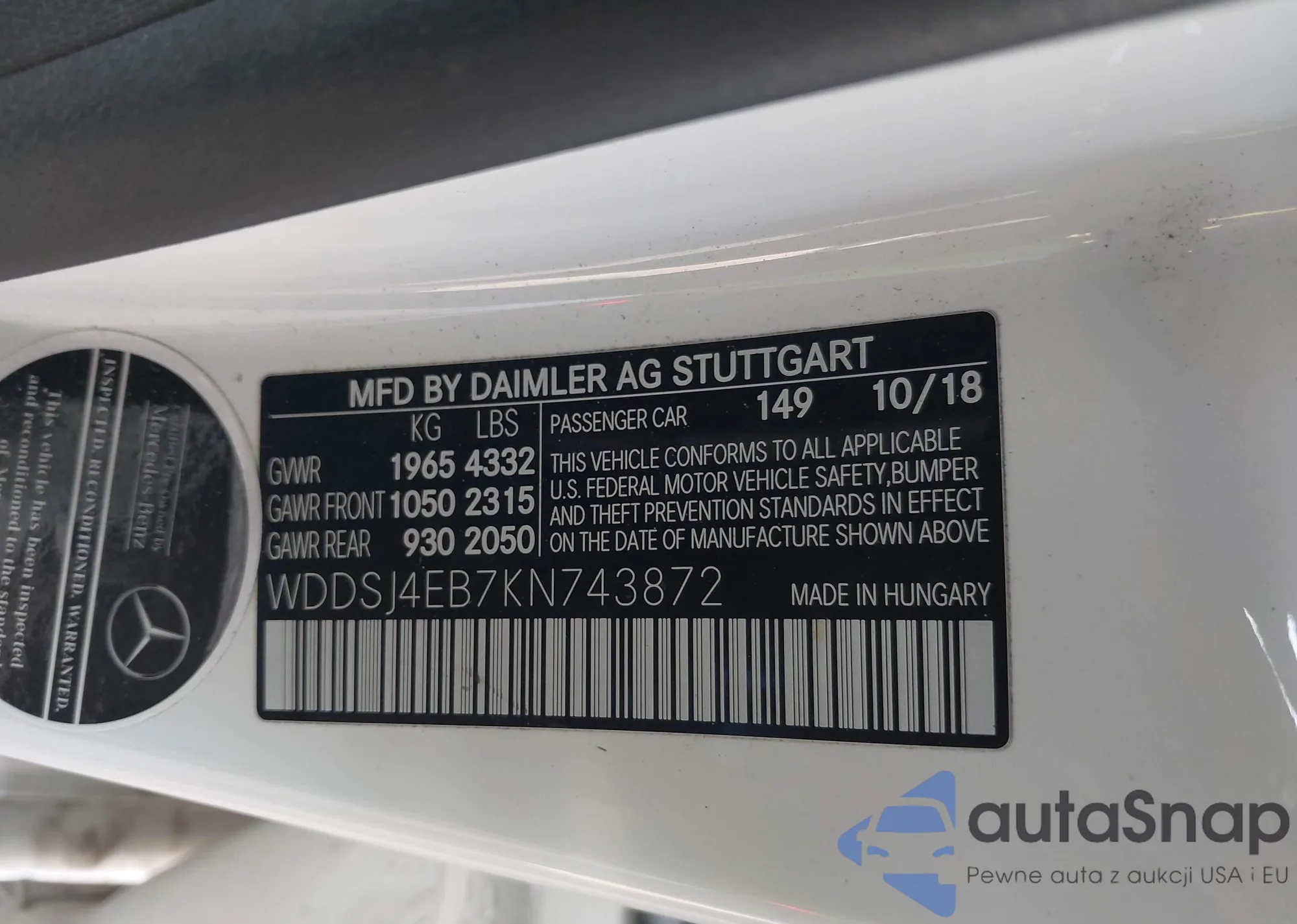 • VIN WDDSJ4EB7KN743872