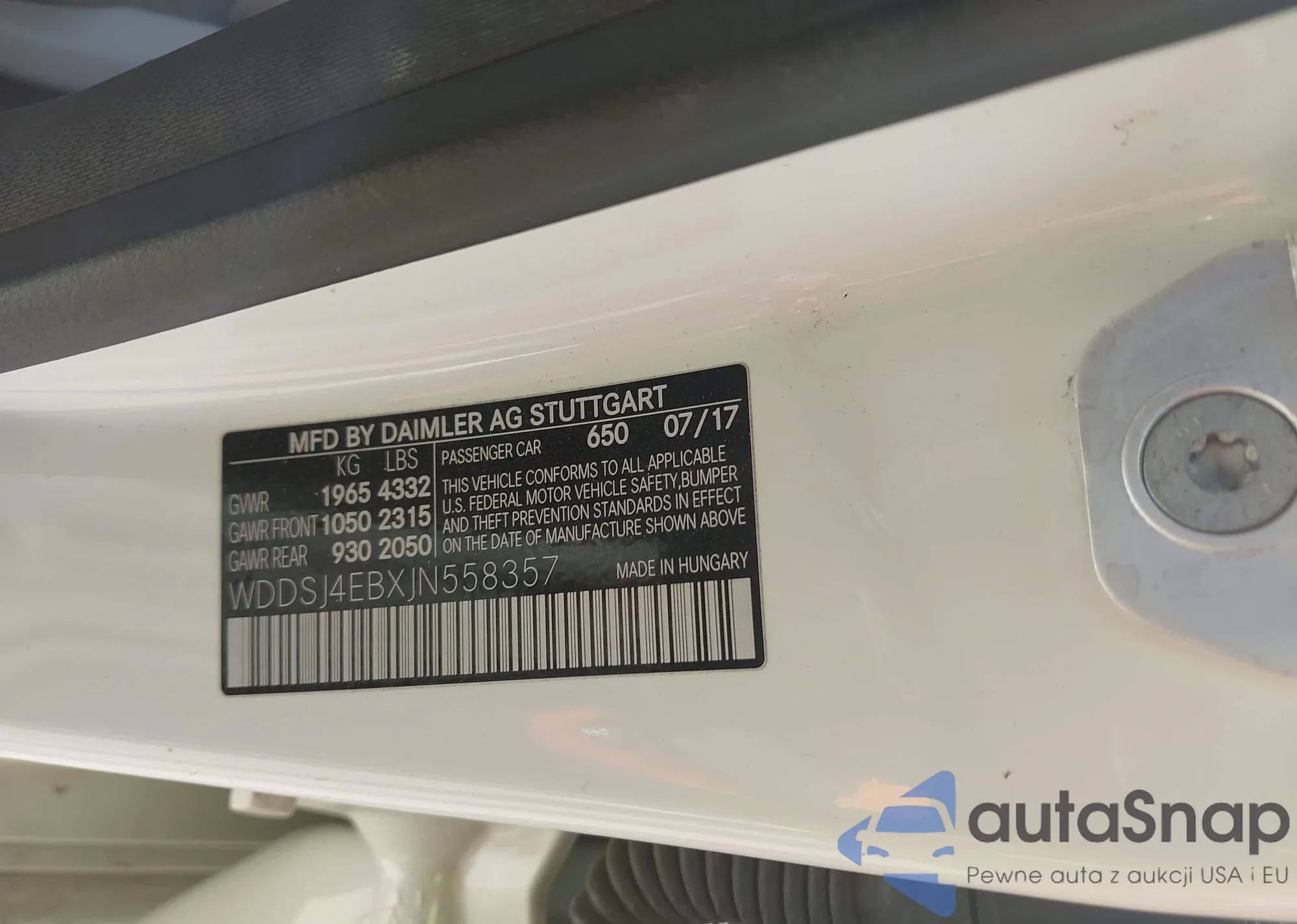 • VIN WDDSJ4EBXJN558357