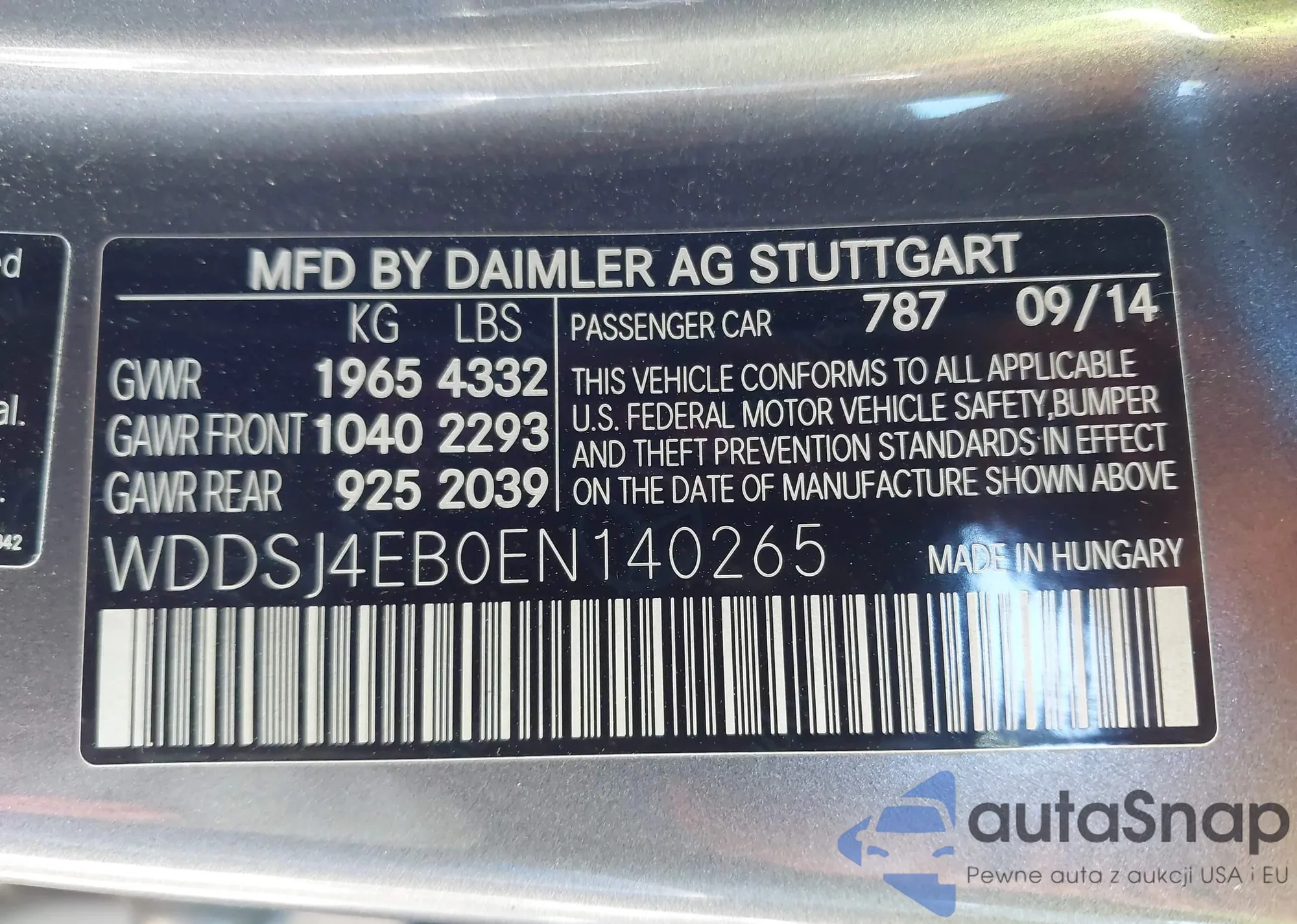LOT: 43897439 VIN: WDDSJ4EB0EN140265