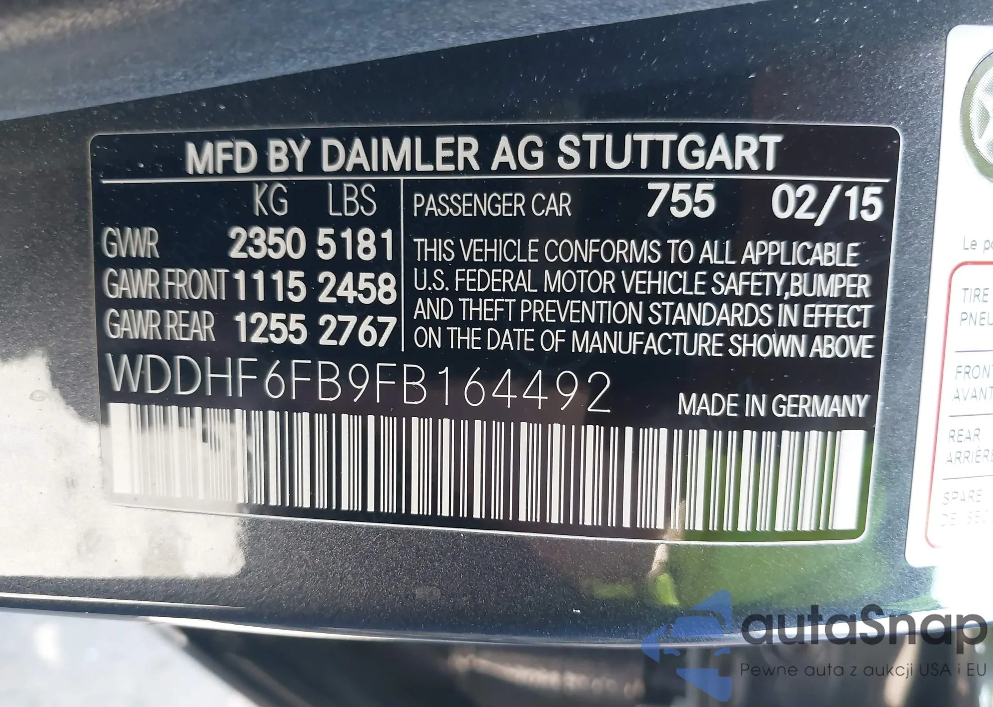 • VIN WDDHF6FB9FB164492