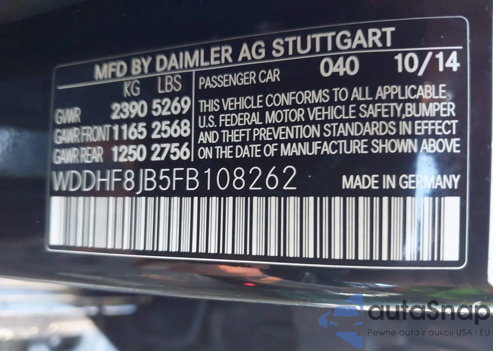 • VIN WDDHF8JB5FB108262