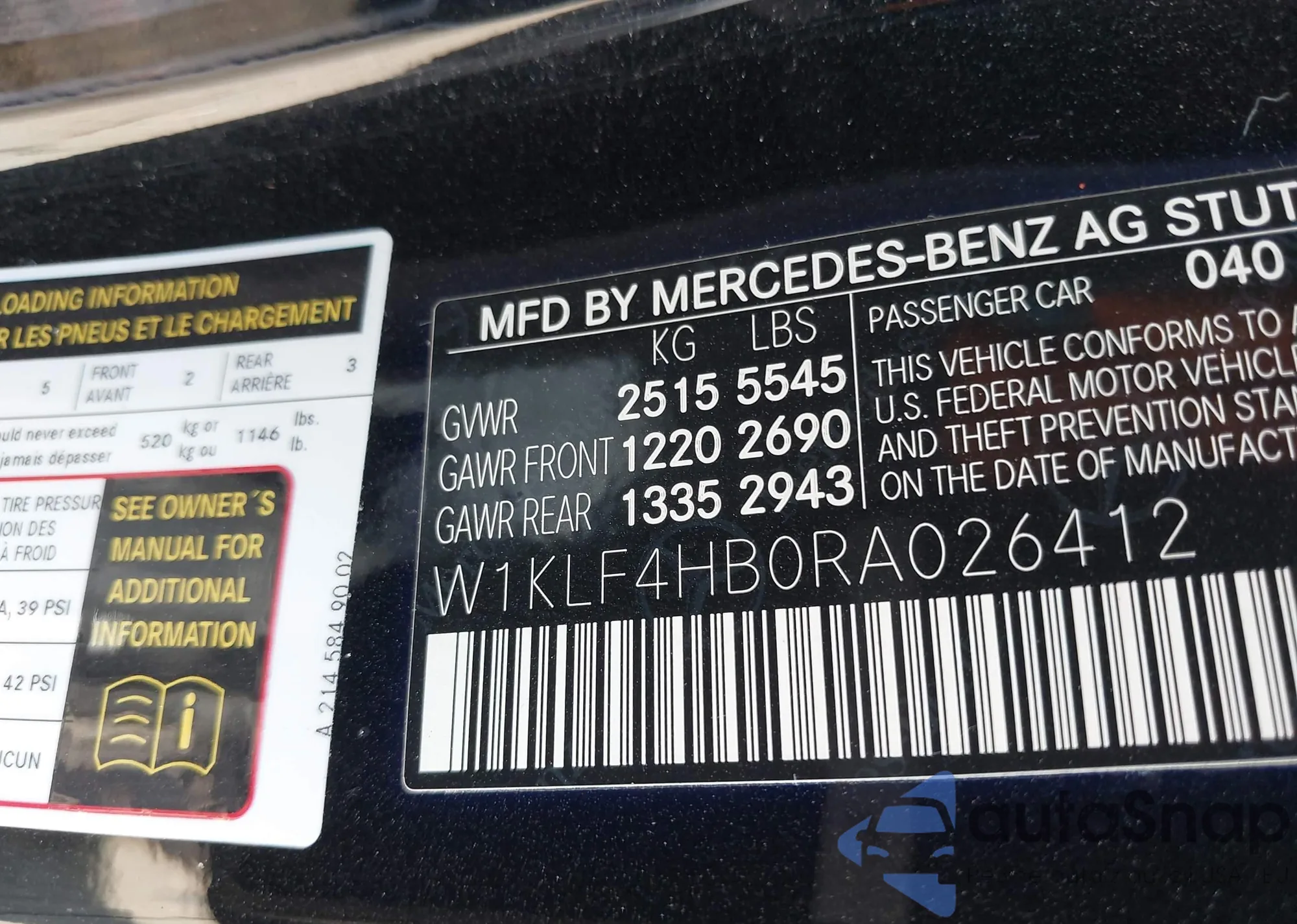 • VIN W1KLF4HB0RA026412