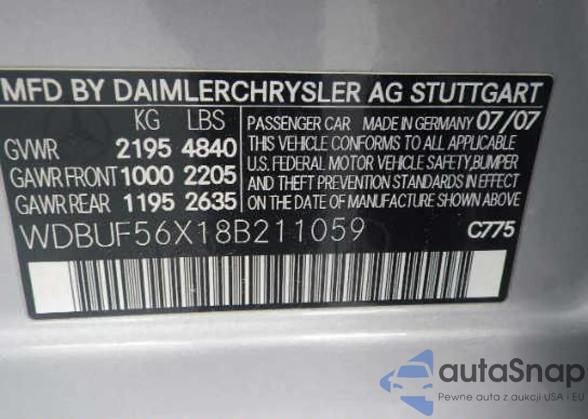 LOT: 9637141 VIN: WDBUF56X18B211059