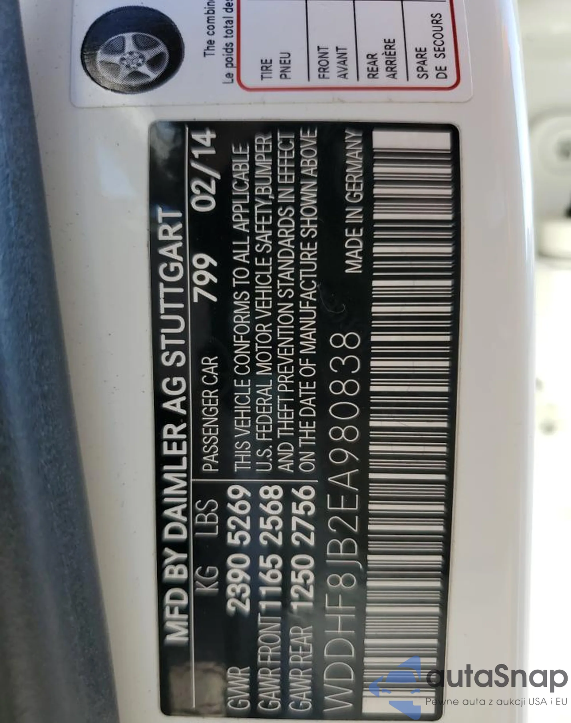 • VIN WDDHF8JB2EA980838