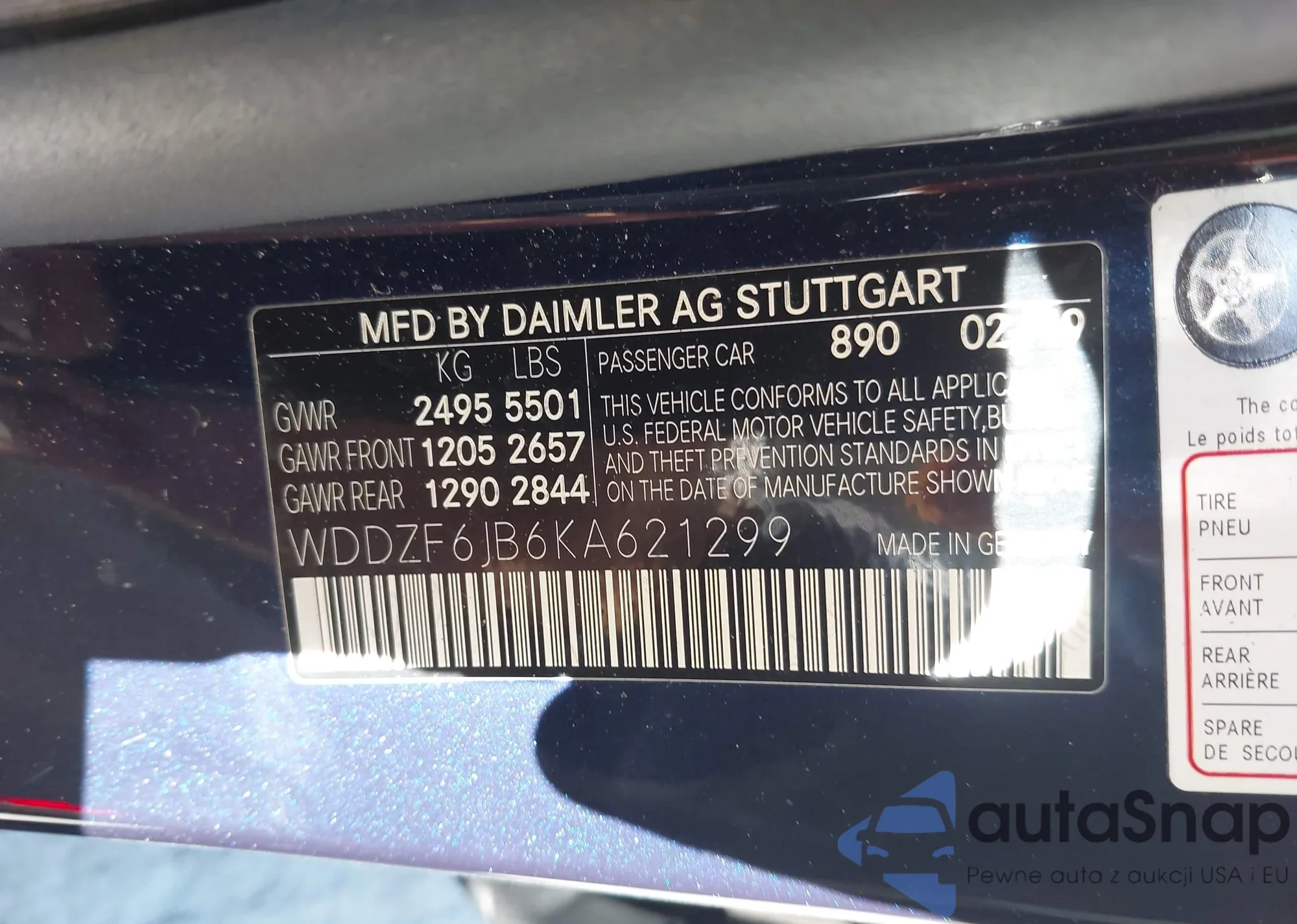 • VIN WDDZF6JB6KA621299