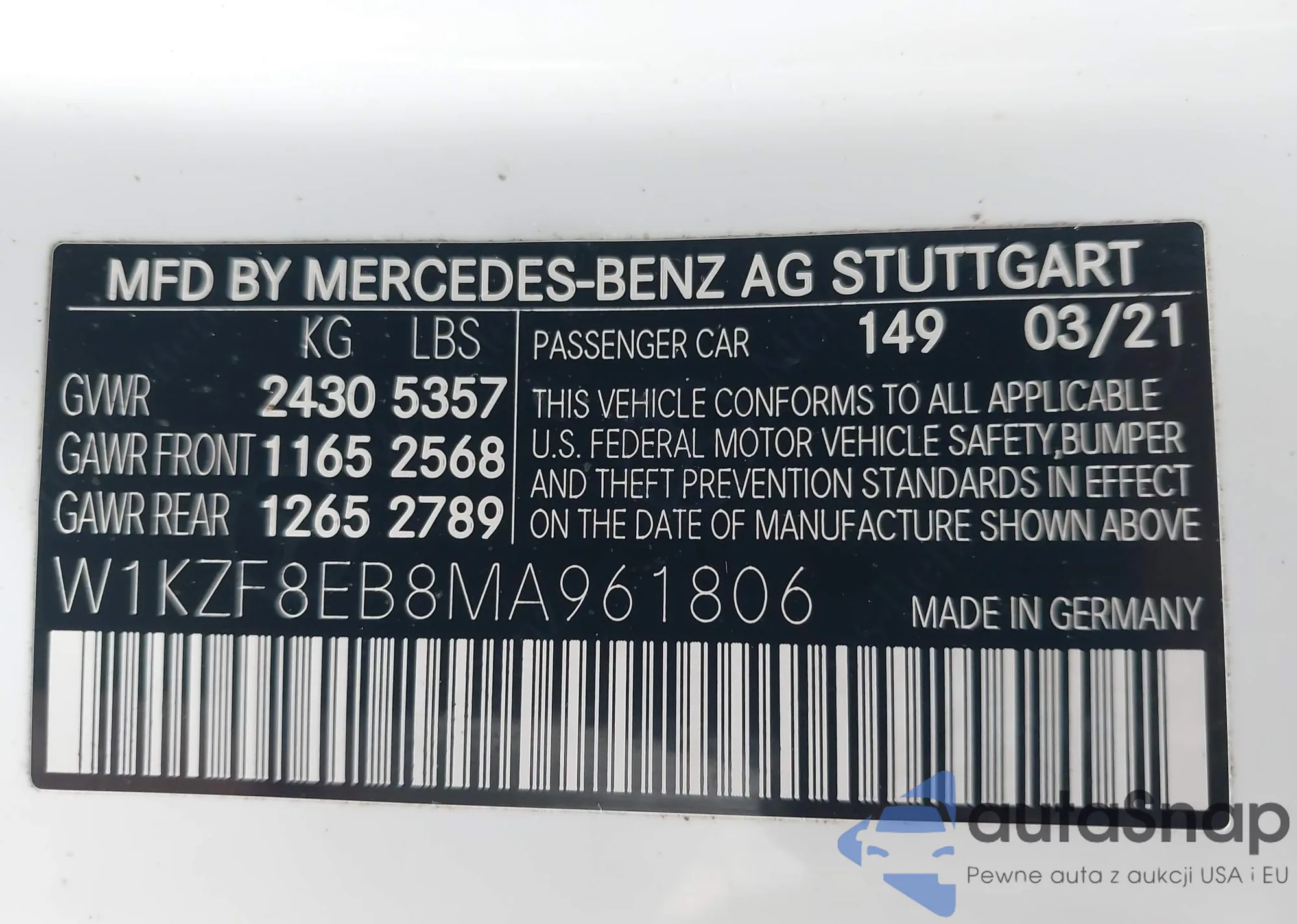 • VIN W1KZF8EB8MA961806