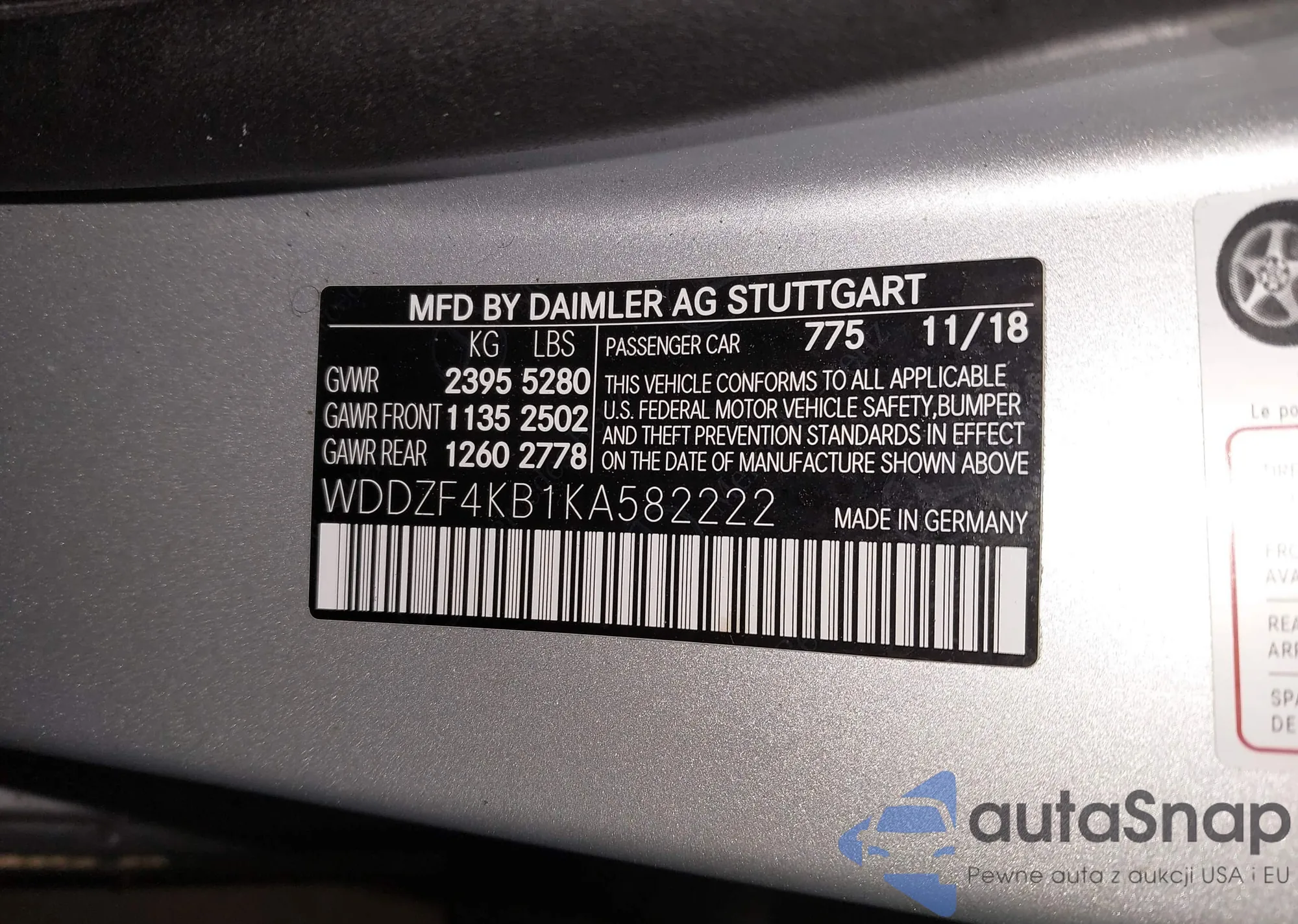 • VIN WDDZF4KB1KA582222
