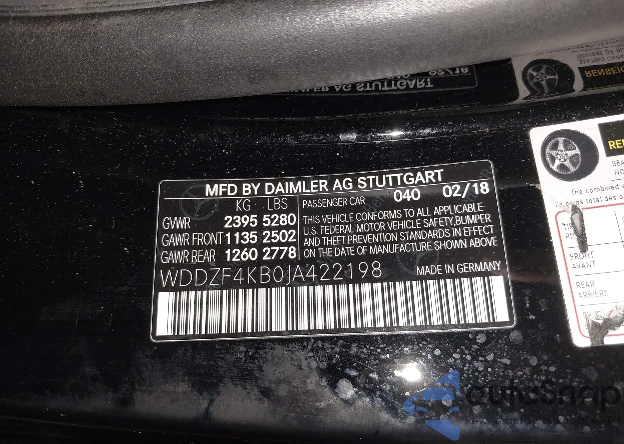 • VIN WDDZF4KB0JA422198