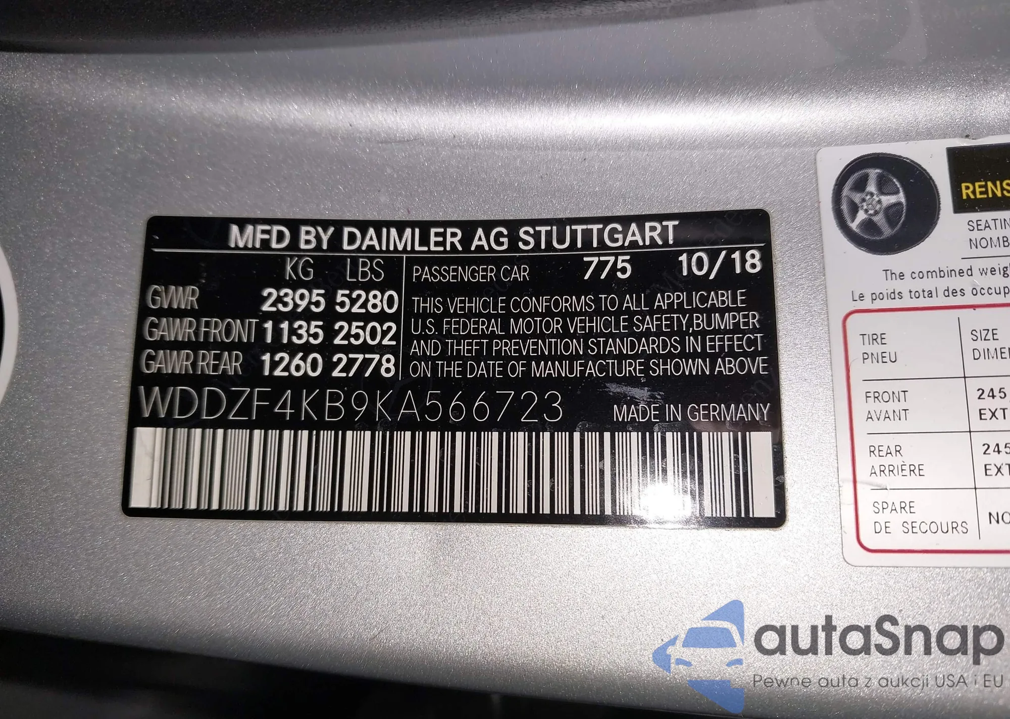 • VIN WDDZF4KB9KA566723