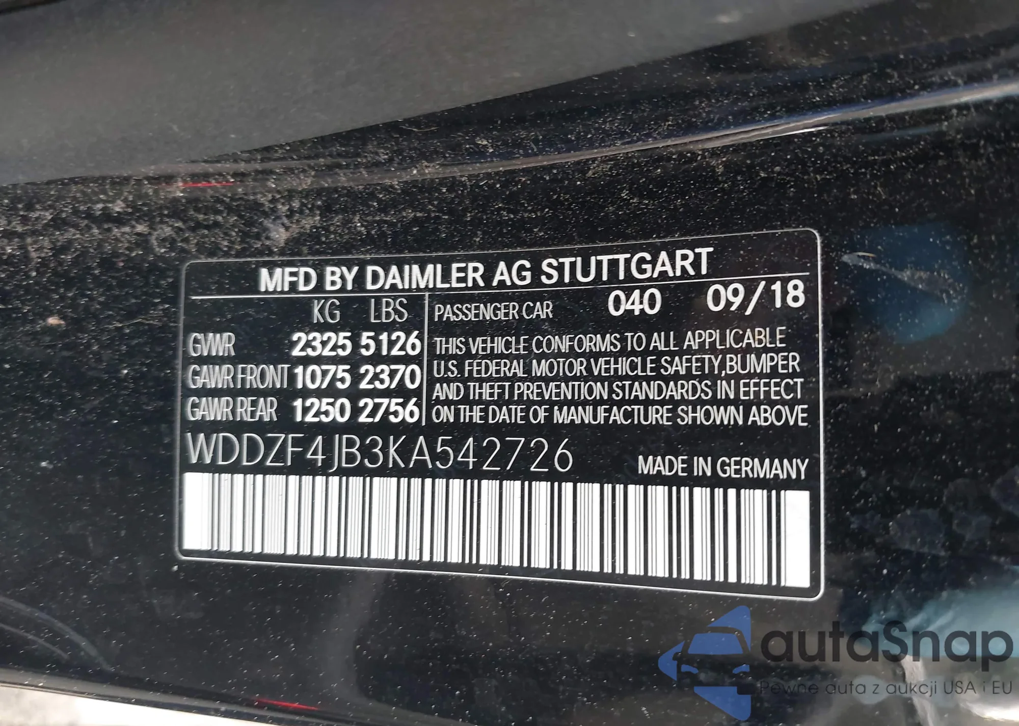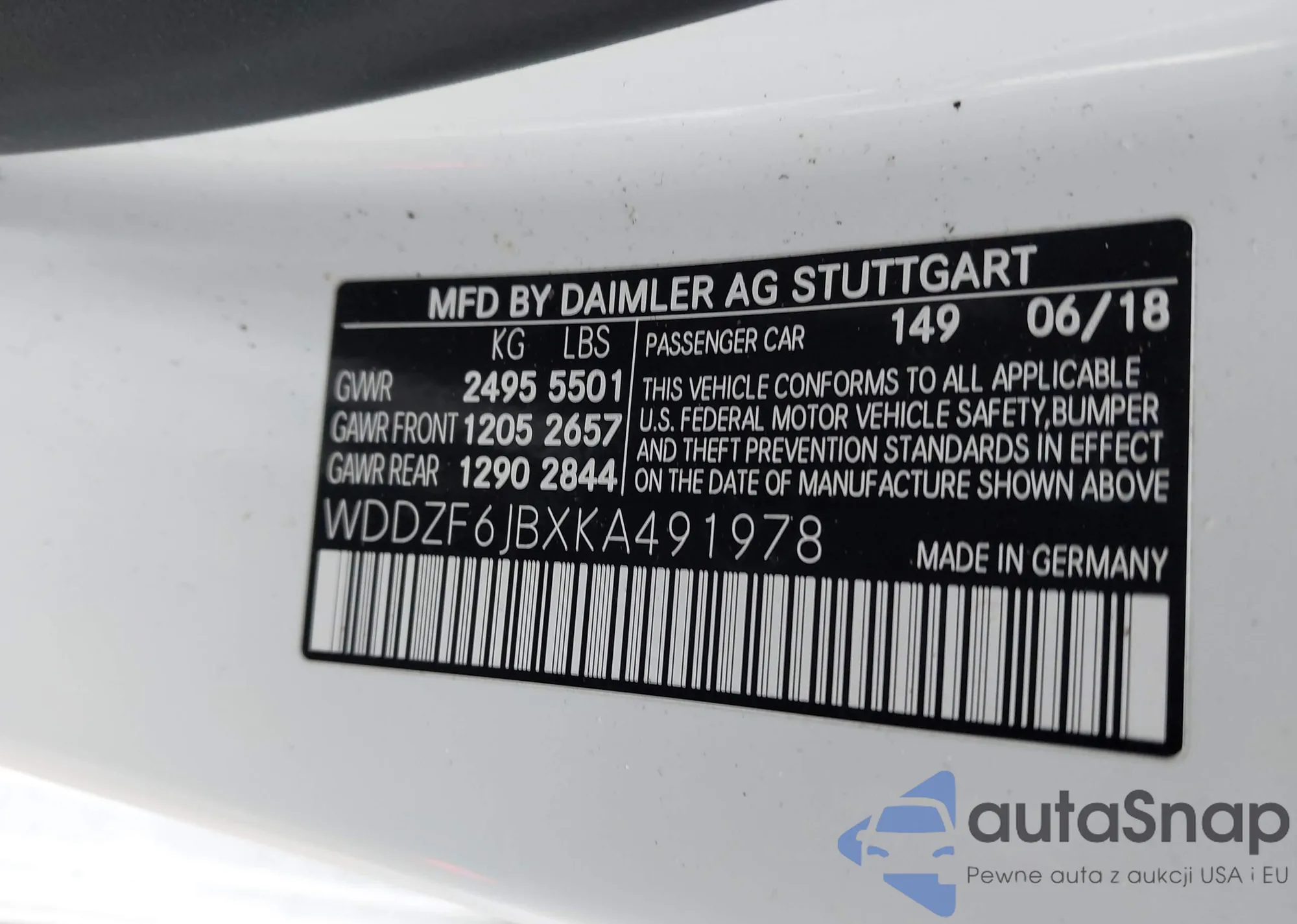 LOT: 44218062 VIN: WDDZF6JBXKA491978