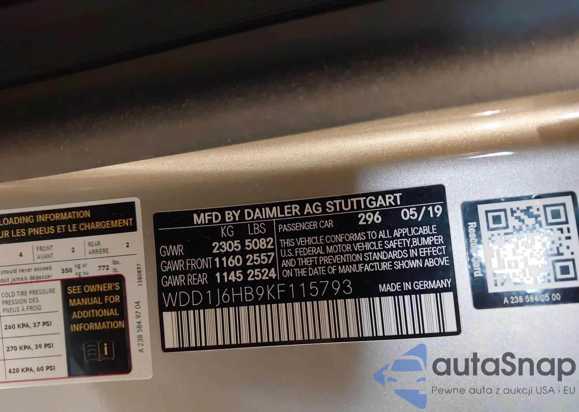 • VIN WDD1J6HB9KF115793