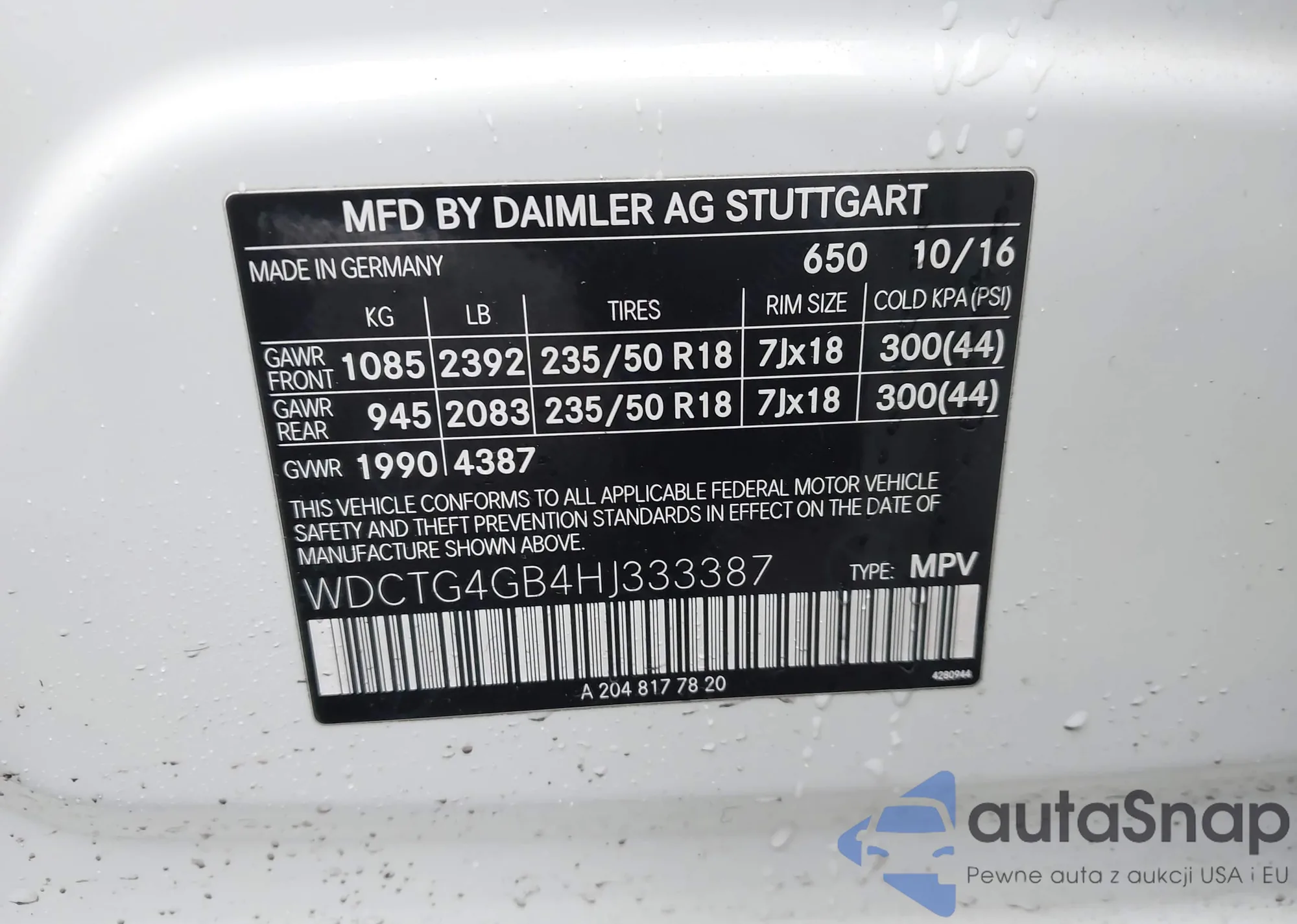 • VIN WDCTG4GB4HJ333387