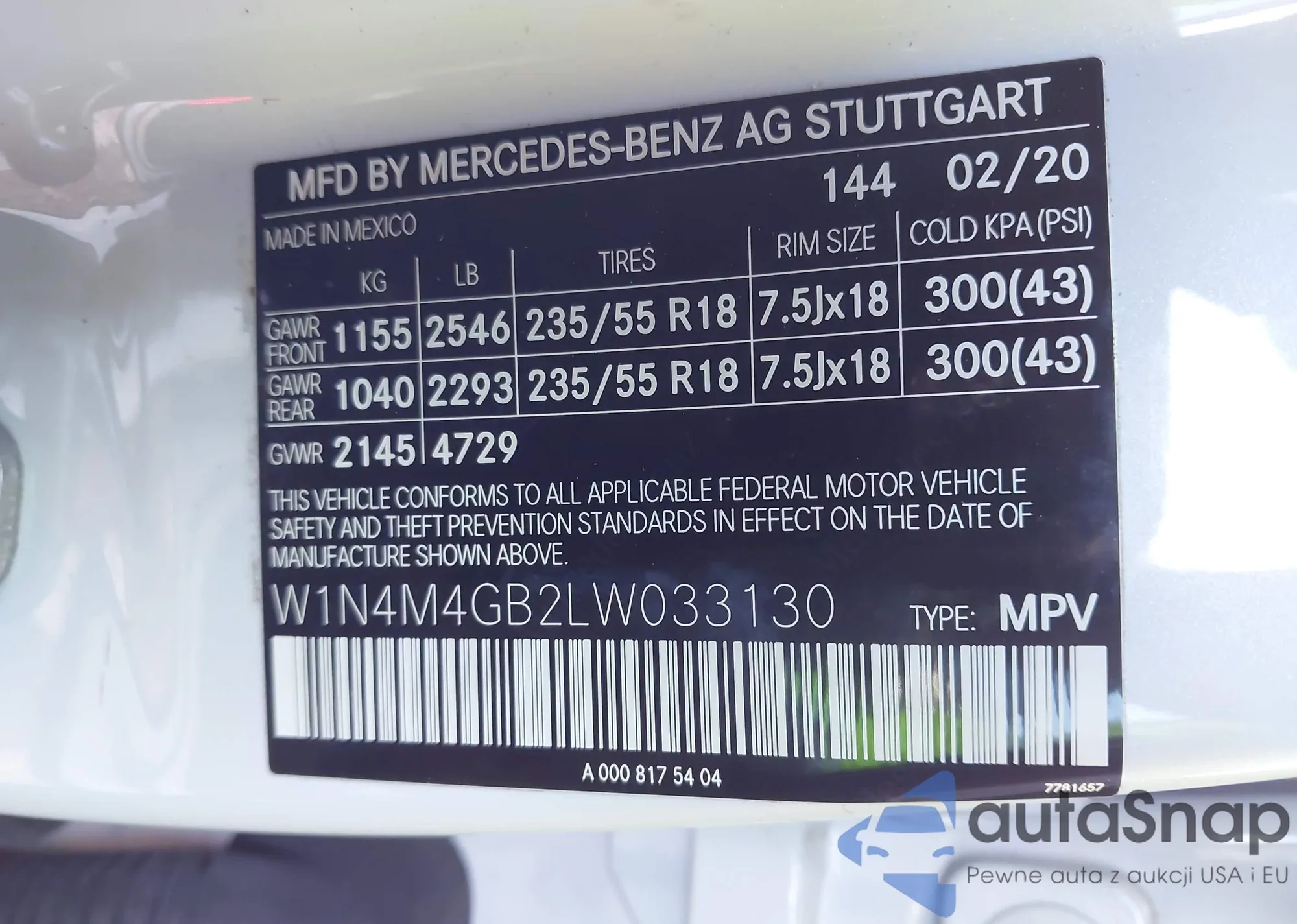 • VIN W1N4M4GB2LW033130