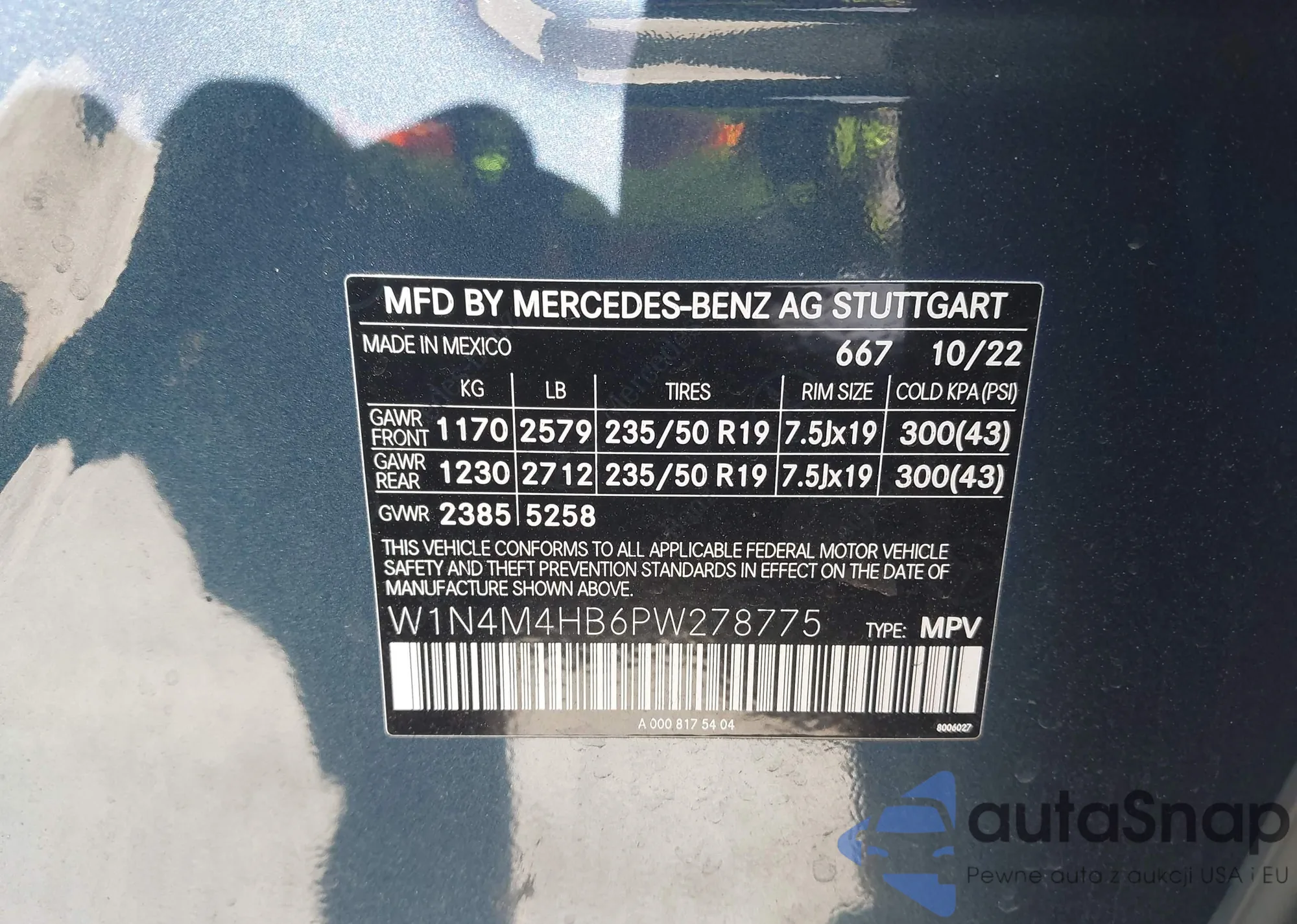 • VIN W1N4M4HB6PW278775