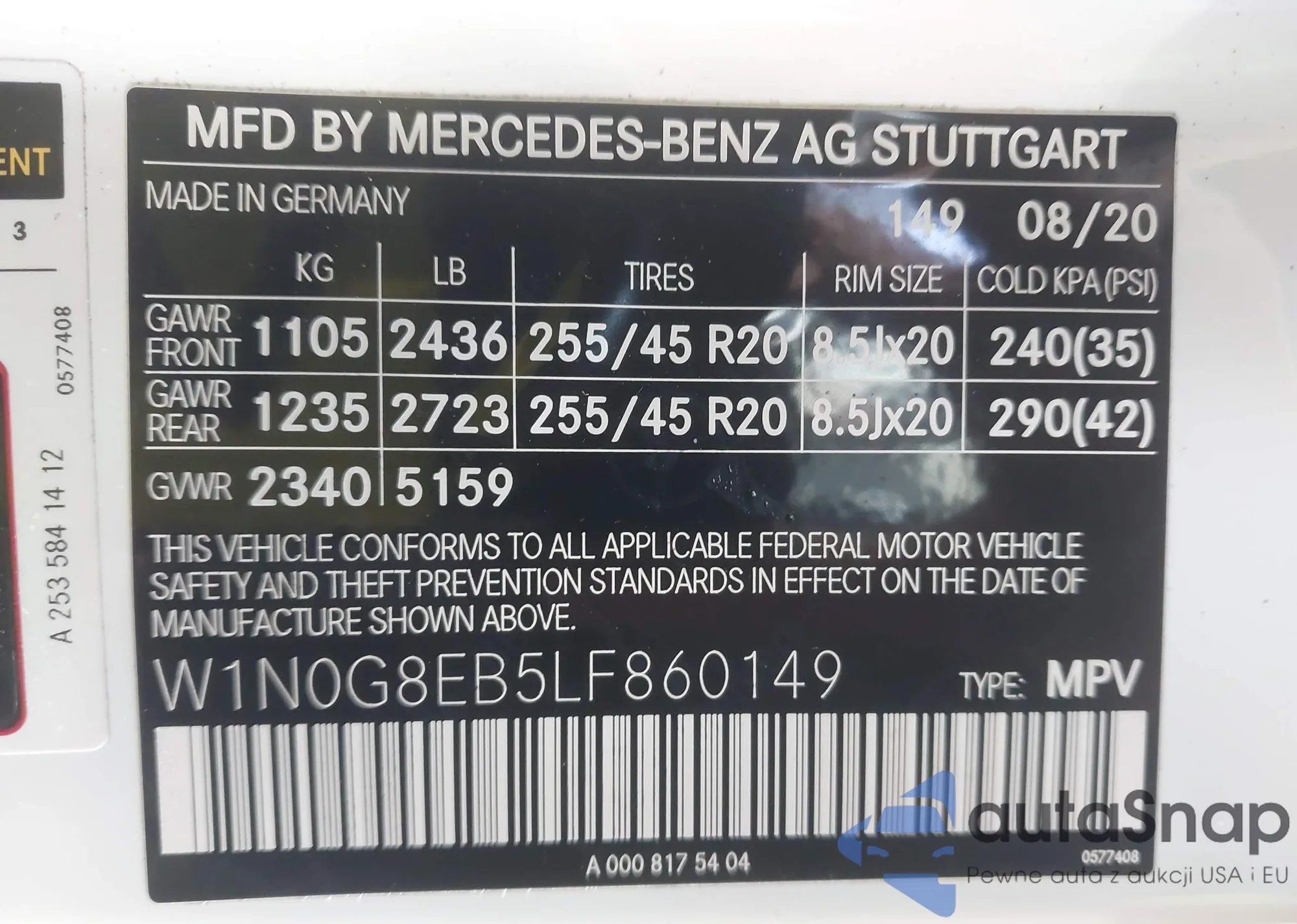 • VIN W1N0G8EB5LF860149