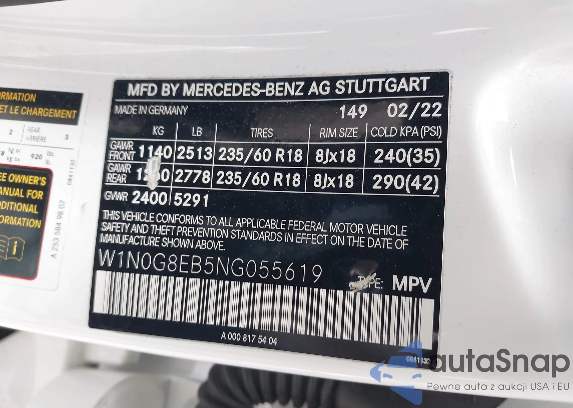 • VIN W1N0G8EB5NG055619