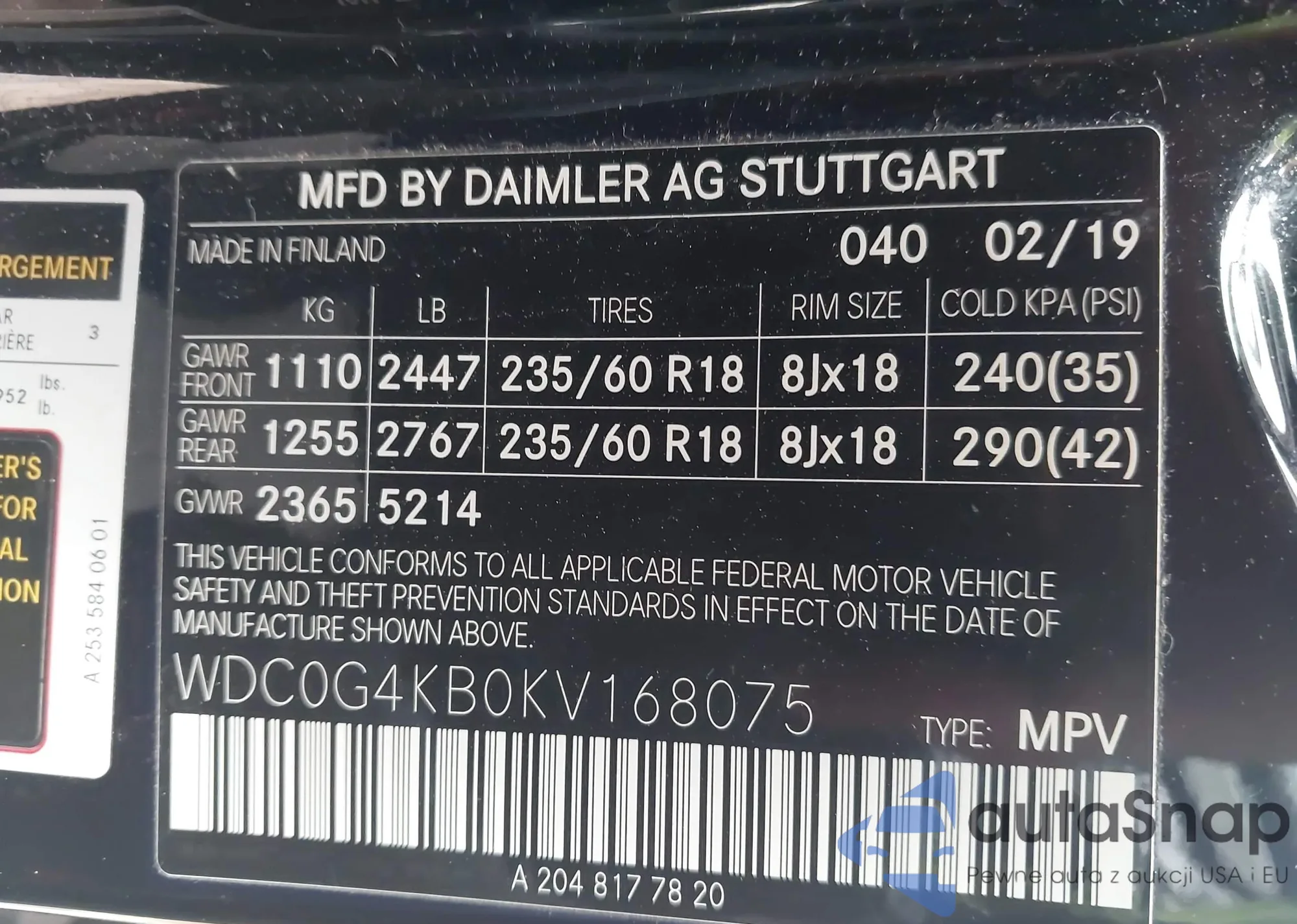 • VIN WDC0G4KB0KV168075