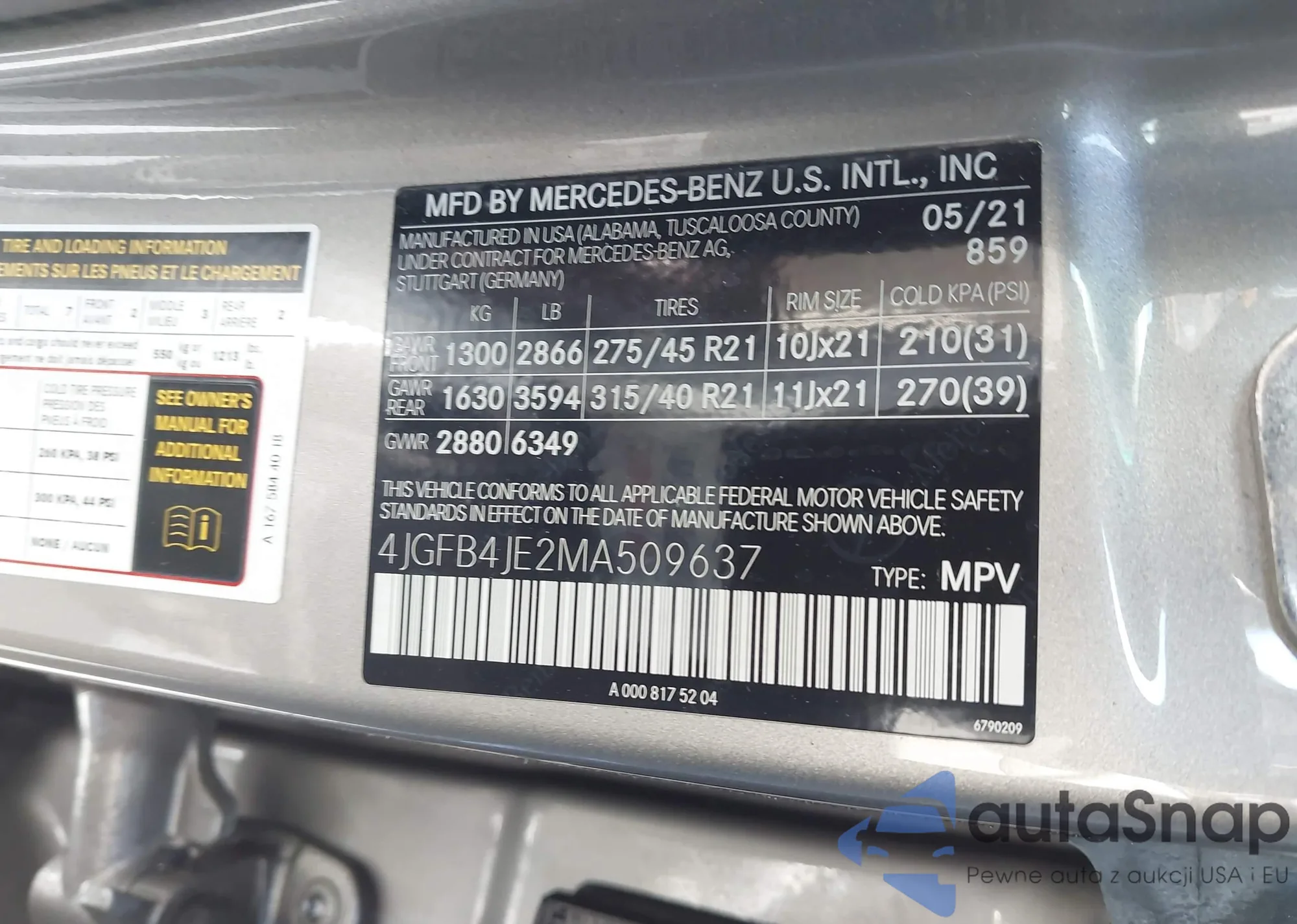 • VIN 4JGFB4KB0MA559859