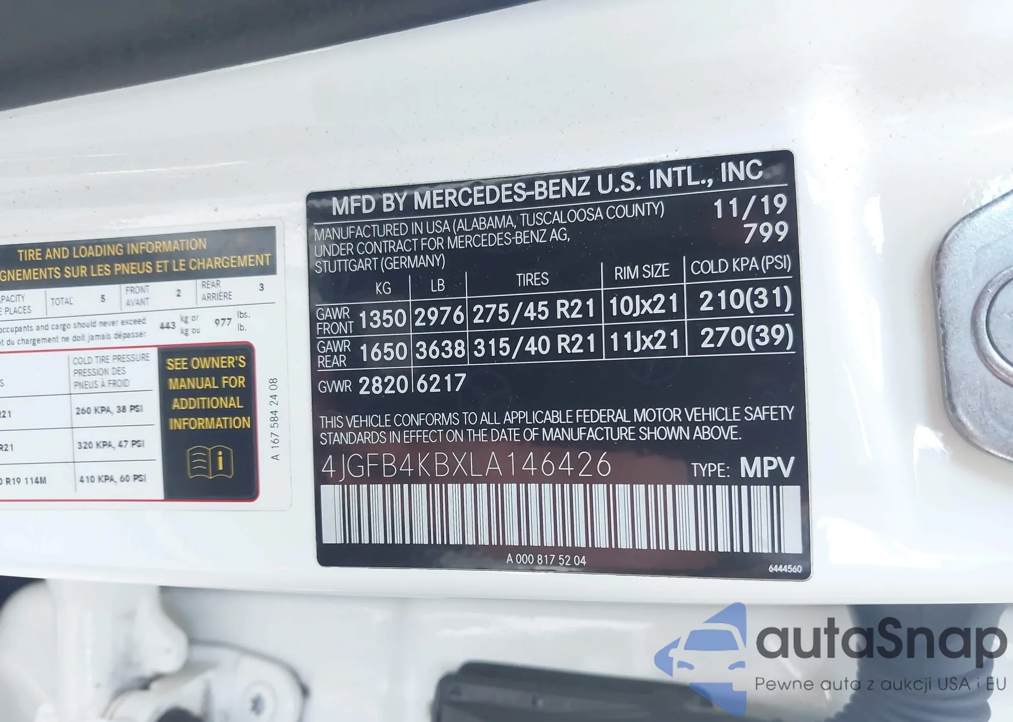 • VIN 4JGFB4KBXLA146426