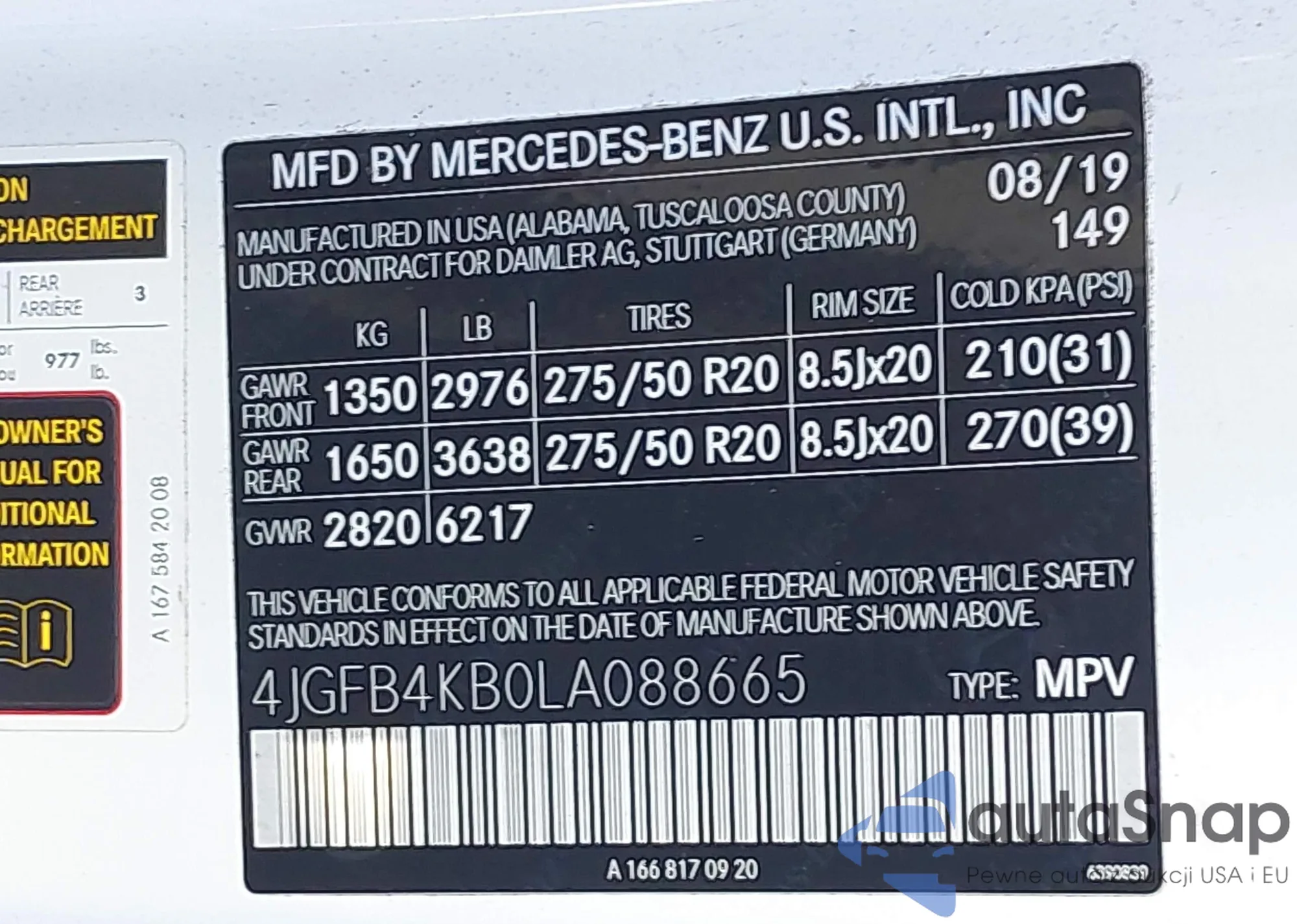 • VIN 4JGFB4KB9LA013754
