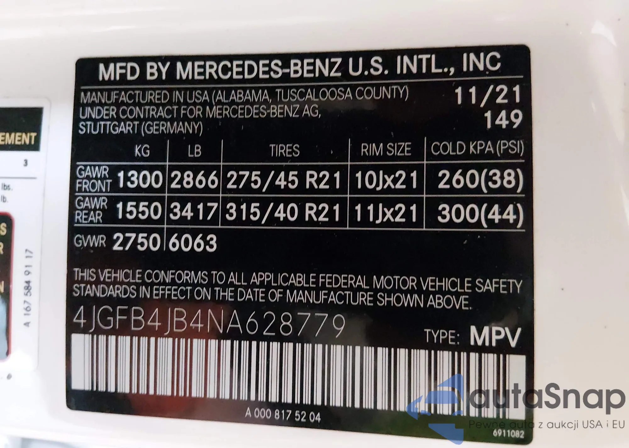 • VIN 4JGFB4JB2MA311792