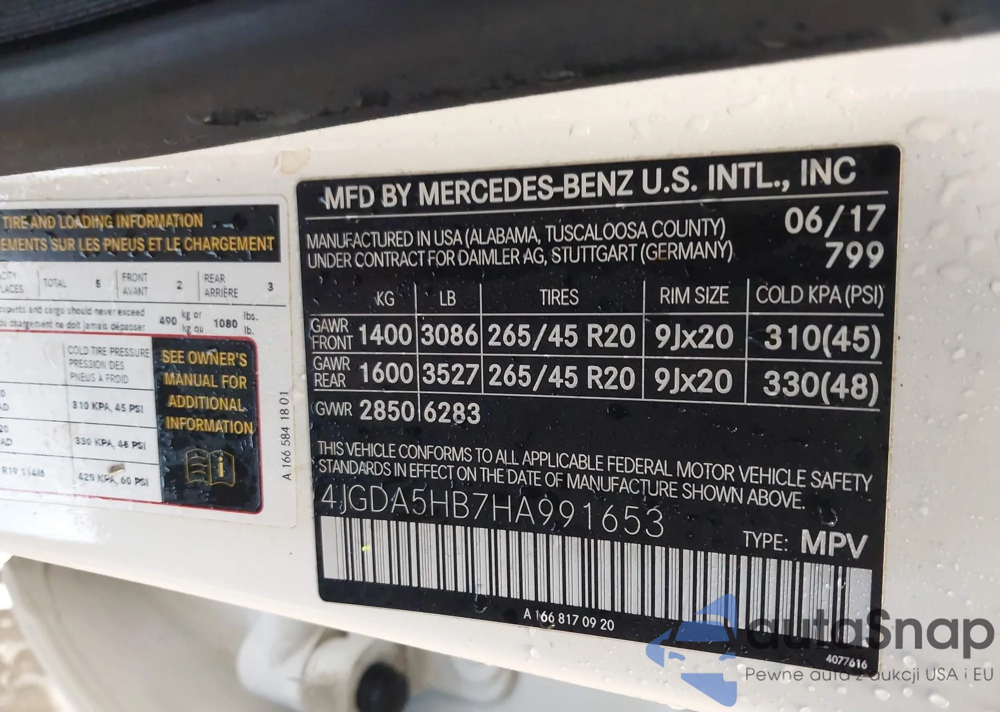 • VIN 4JGDA5HB7HA991653