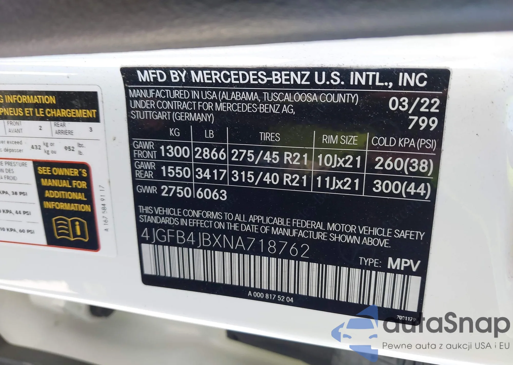 • VIN 4JGFB4JBXNA718762