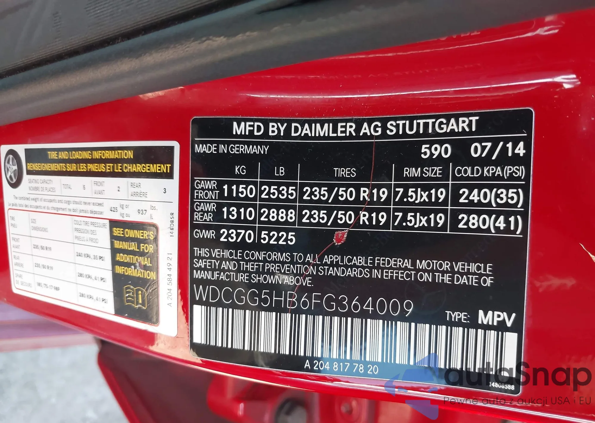 • VIN WDCGG5HB6FG364009