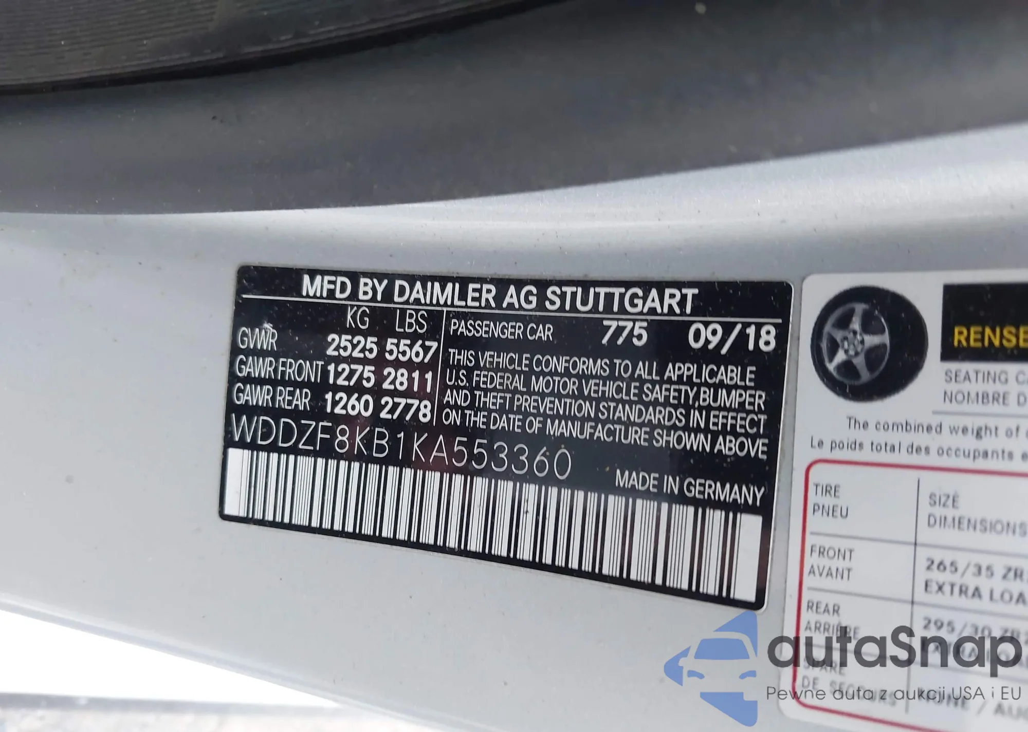 • VIN WDDZF8KB1KA553360