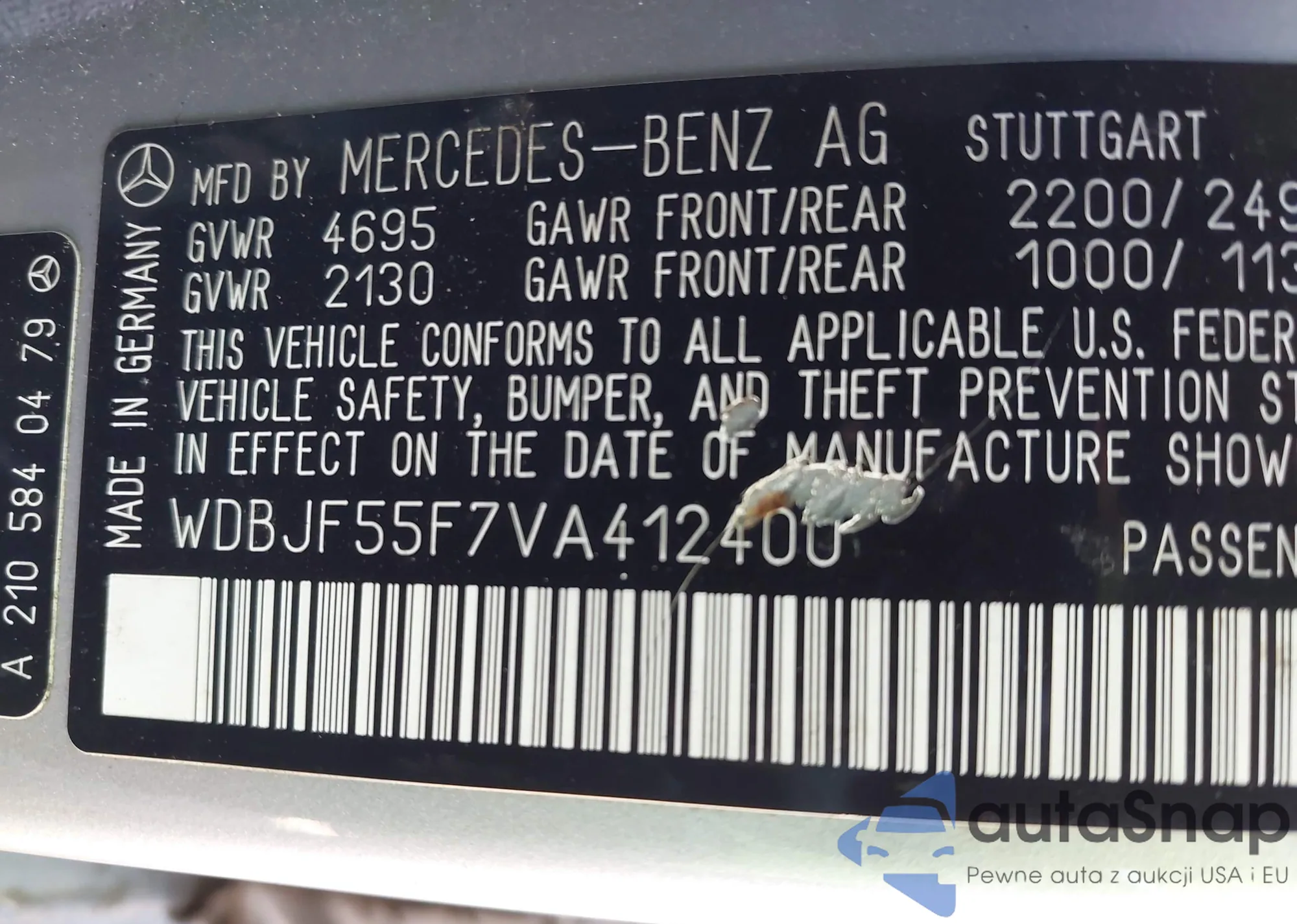 • VIN WDDHF5KB6DA687536