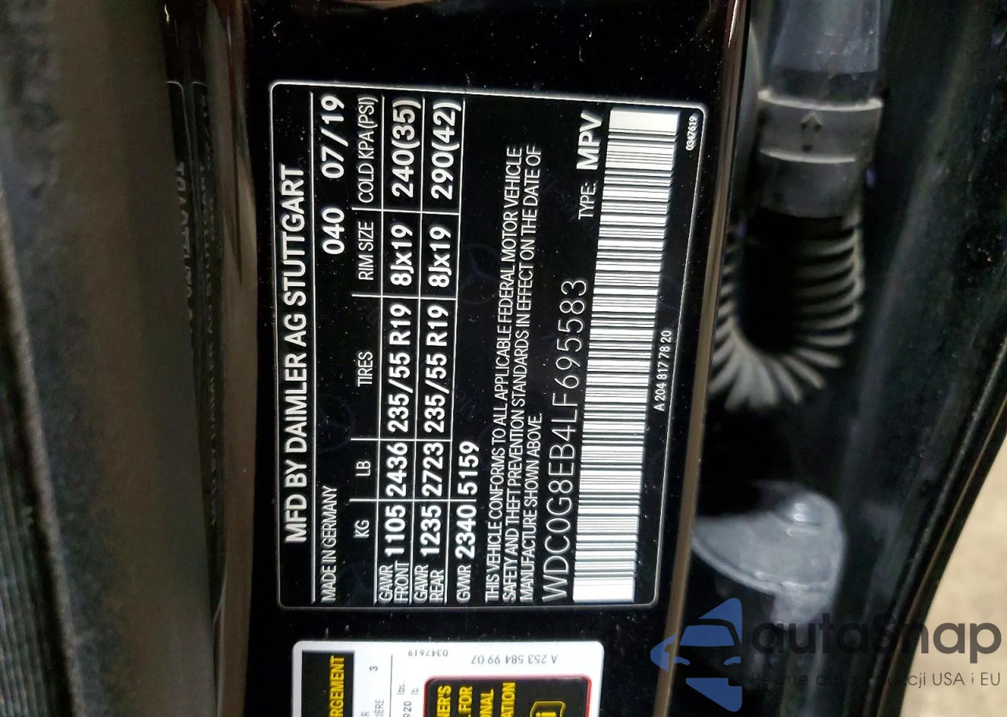 • VIN WDC0G8EB4LF695583