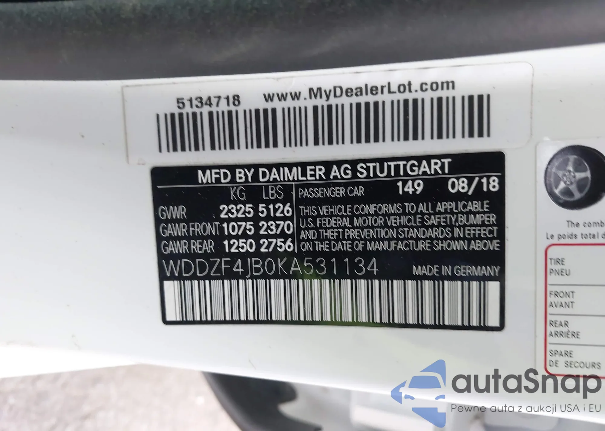 • VIN WDDZF4JB0KA531134