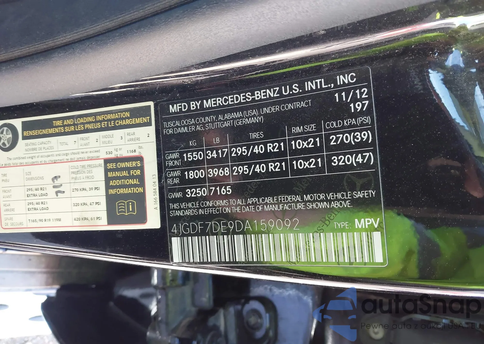 • VIN 4JGDF7DE9DA159092