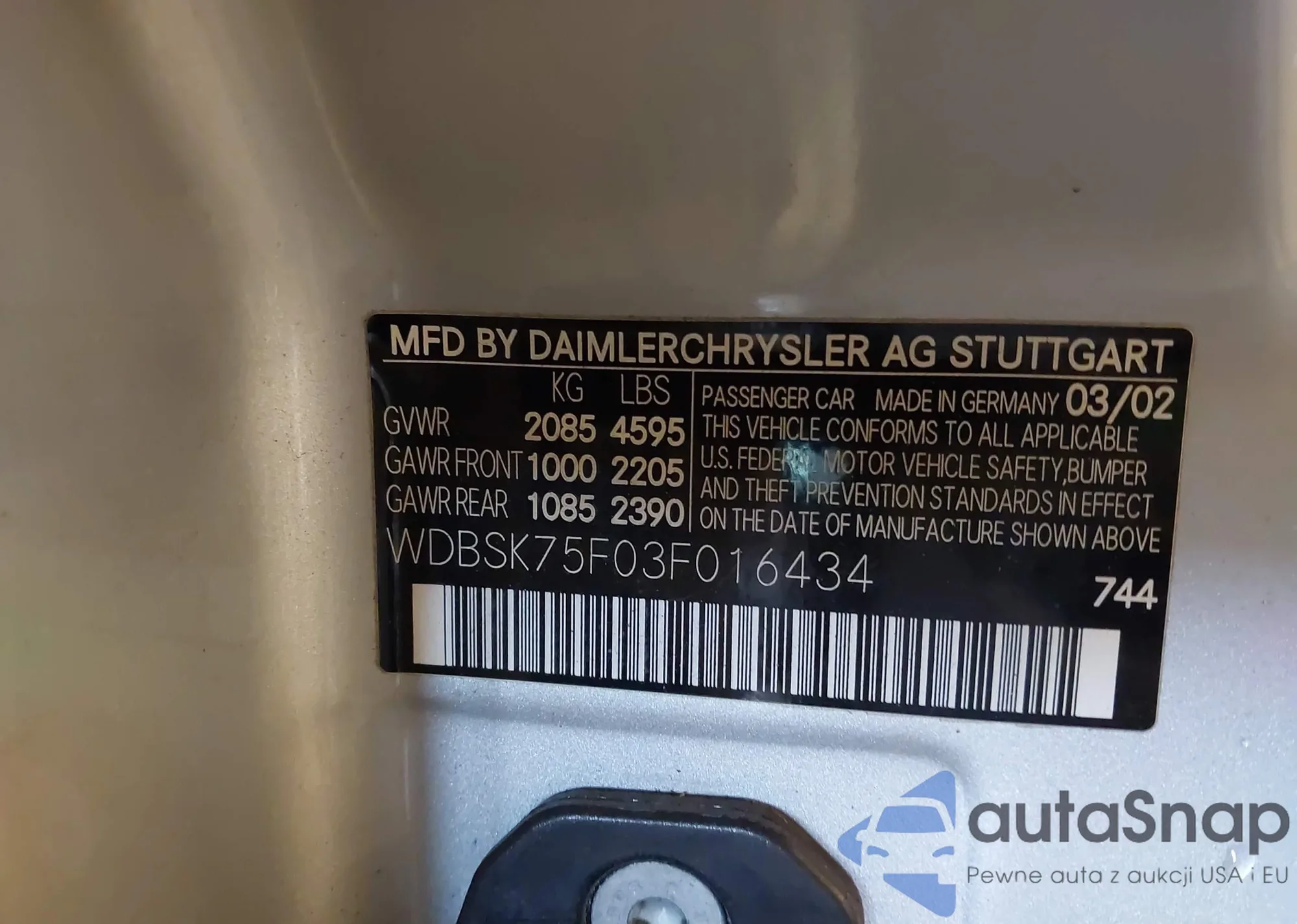 • VIN WDBSK75F03F016434