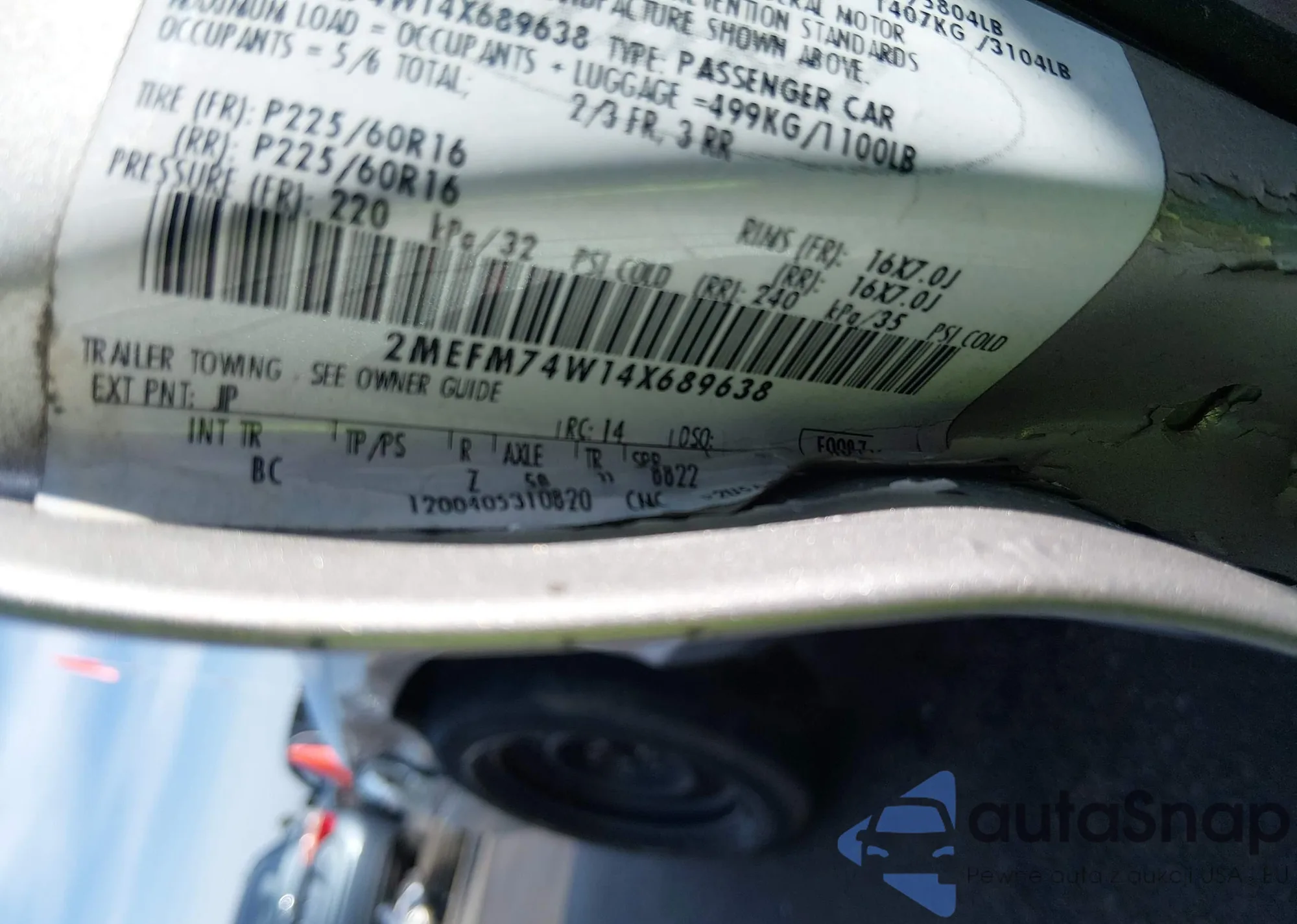 LOT: 44617240 VIN: 2MEFM74W14X689638
