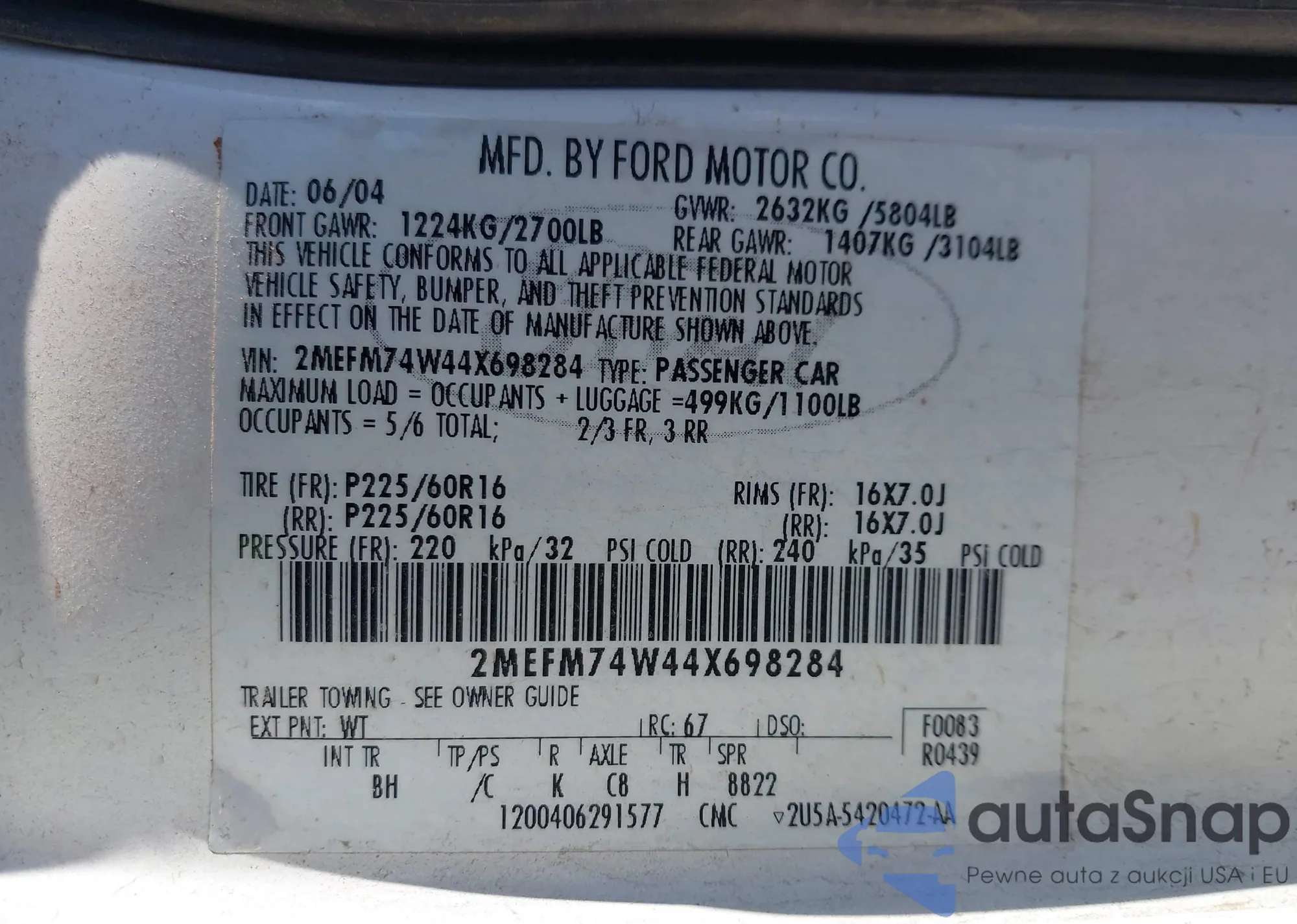 LOT: 44246798 VIN: 2MEFM74W44X698284