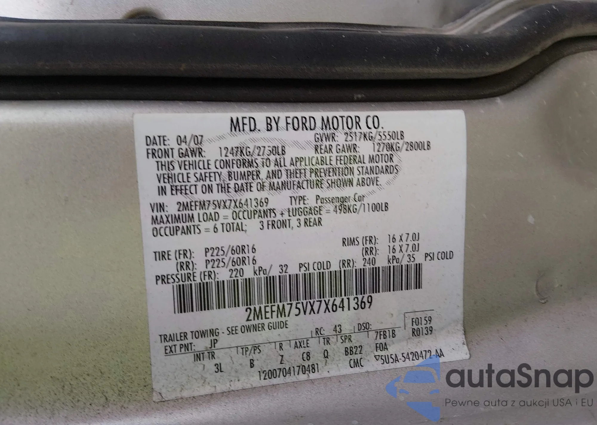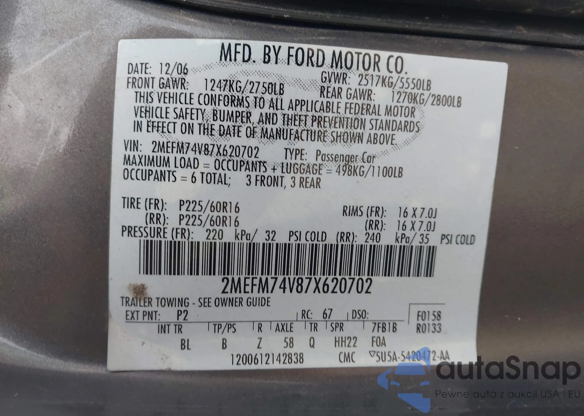 LOT: 44274283 VIN: 2MEFM74V87X620702