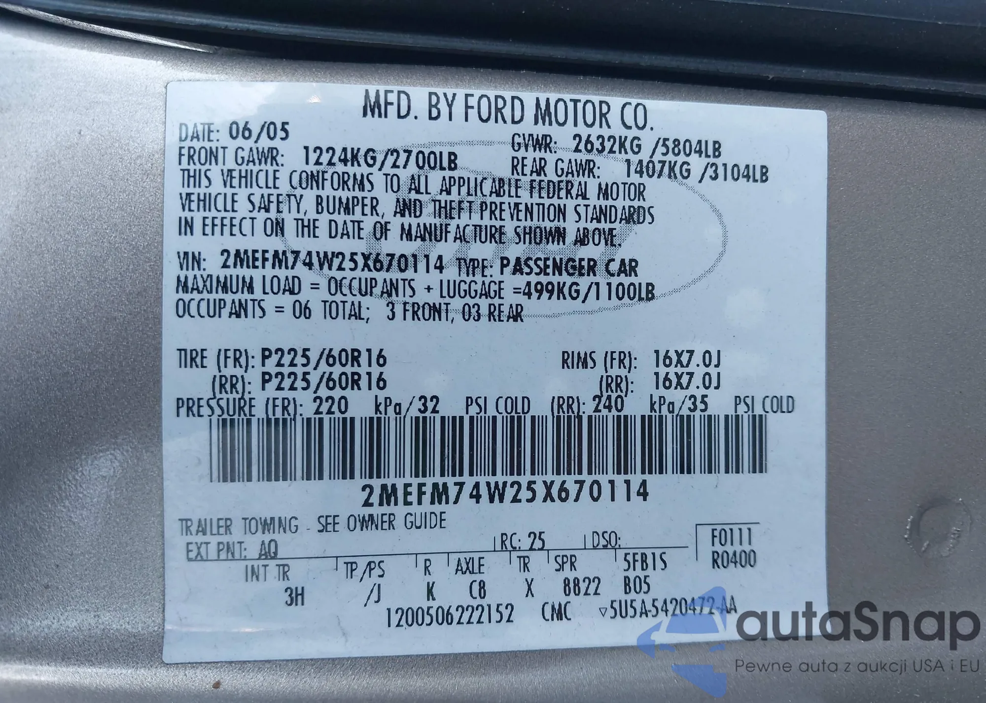 • VIN 2MEFM74W25X670114