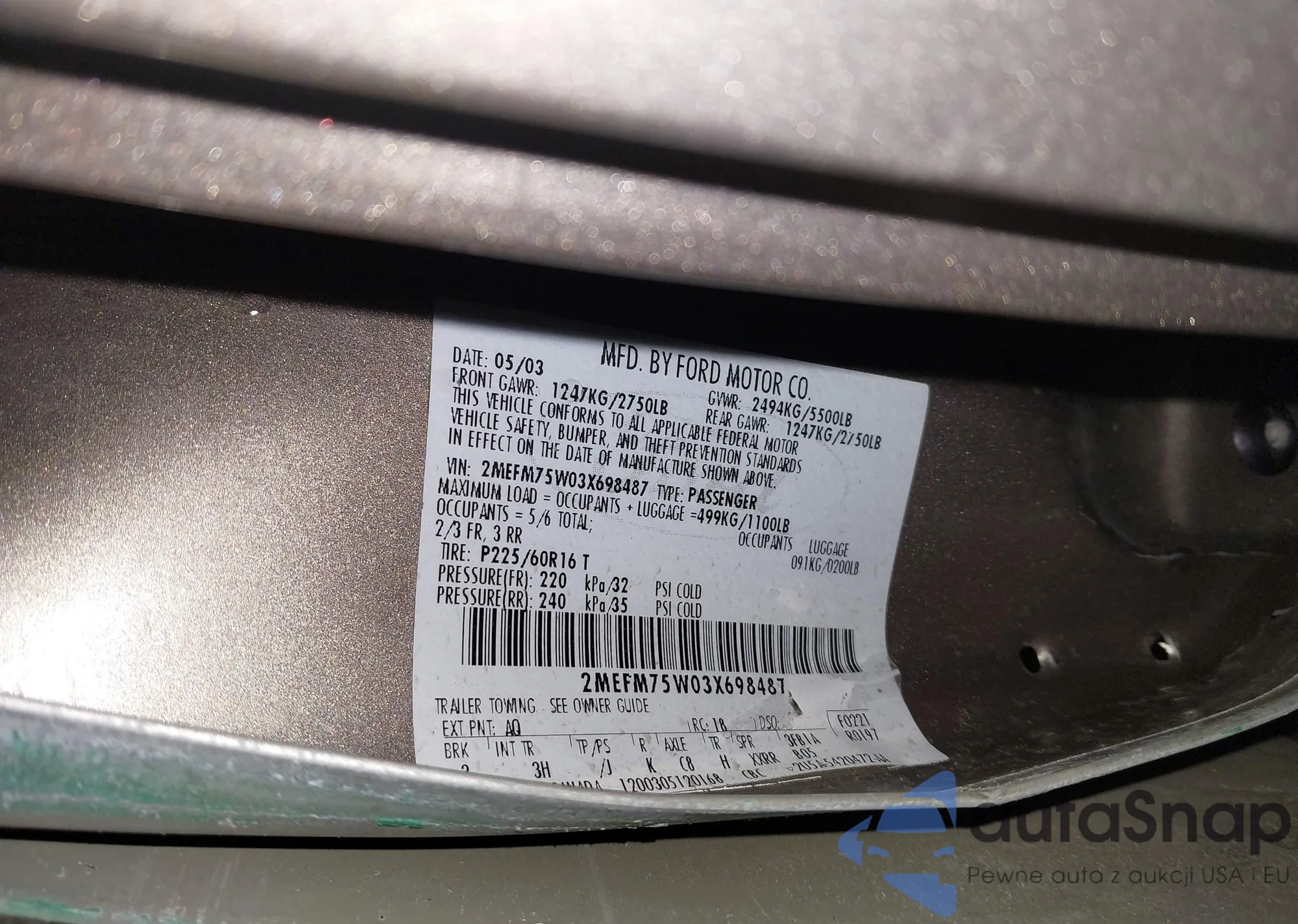 LOT: 44302935 VIN: 2MEFM75W03X698487