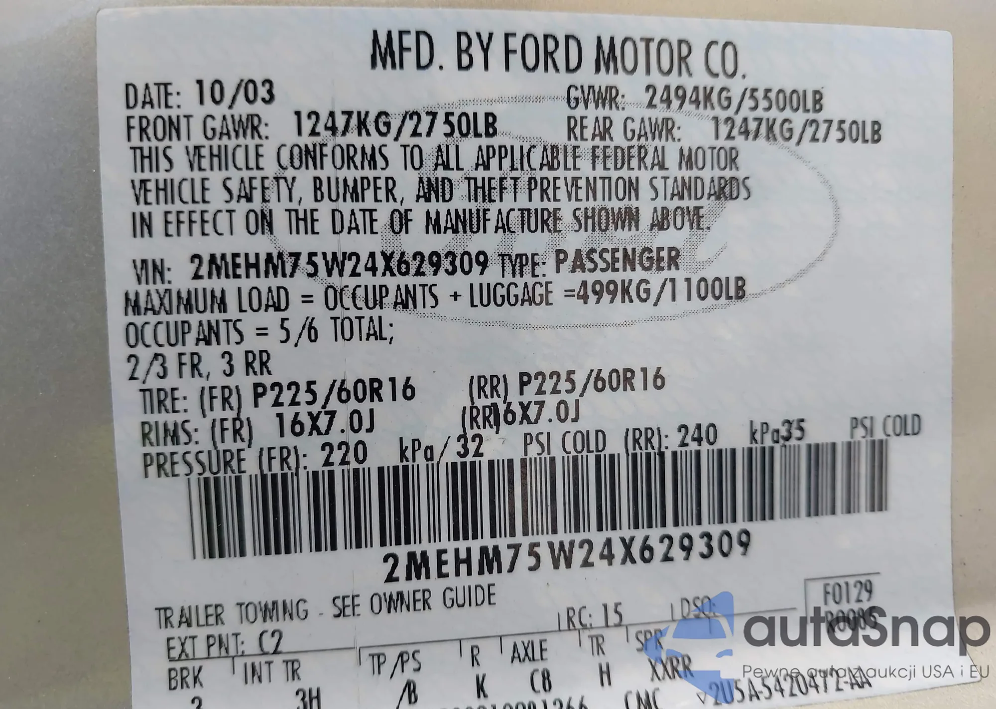 • VIN 2MEFM75W33X649204