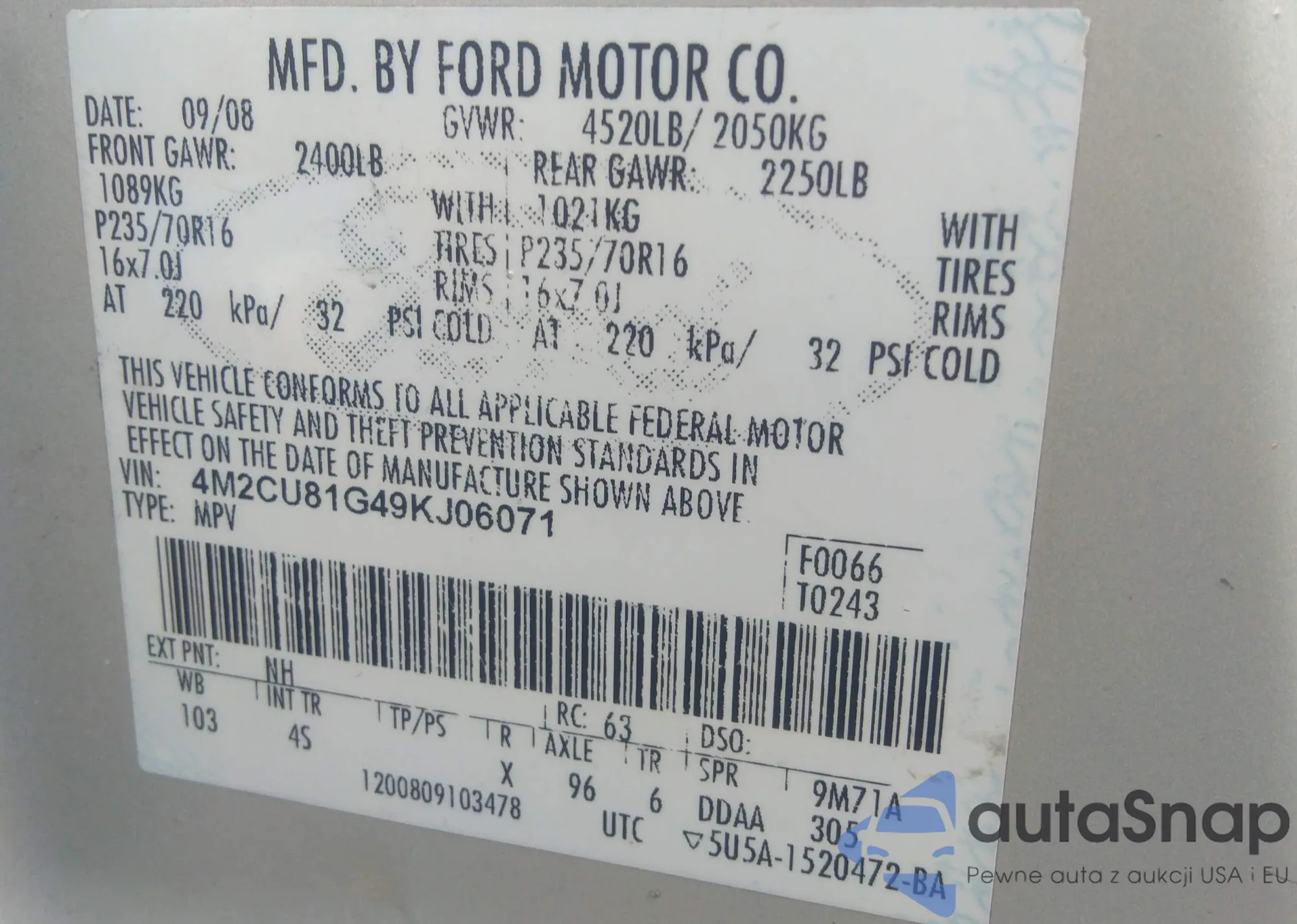 • VIN 4M2CU81G49KJ06071