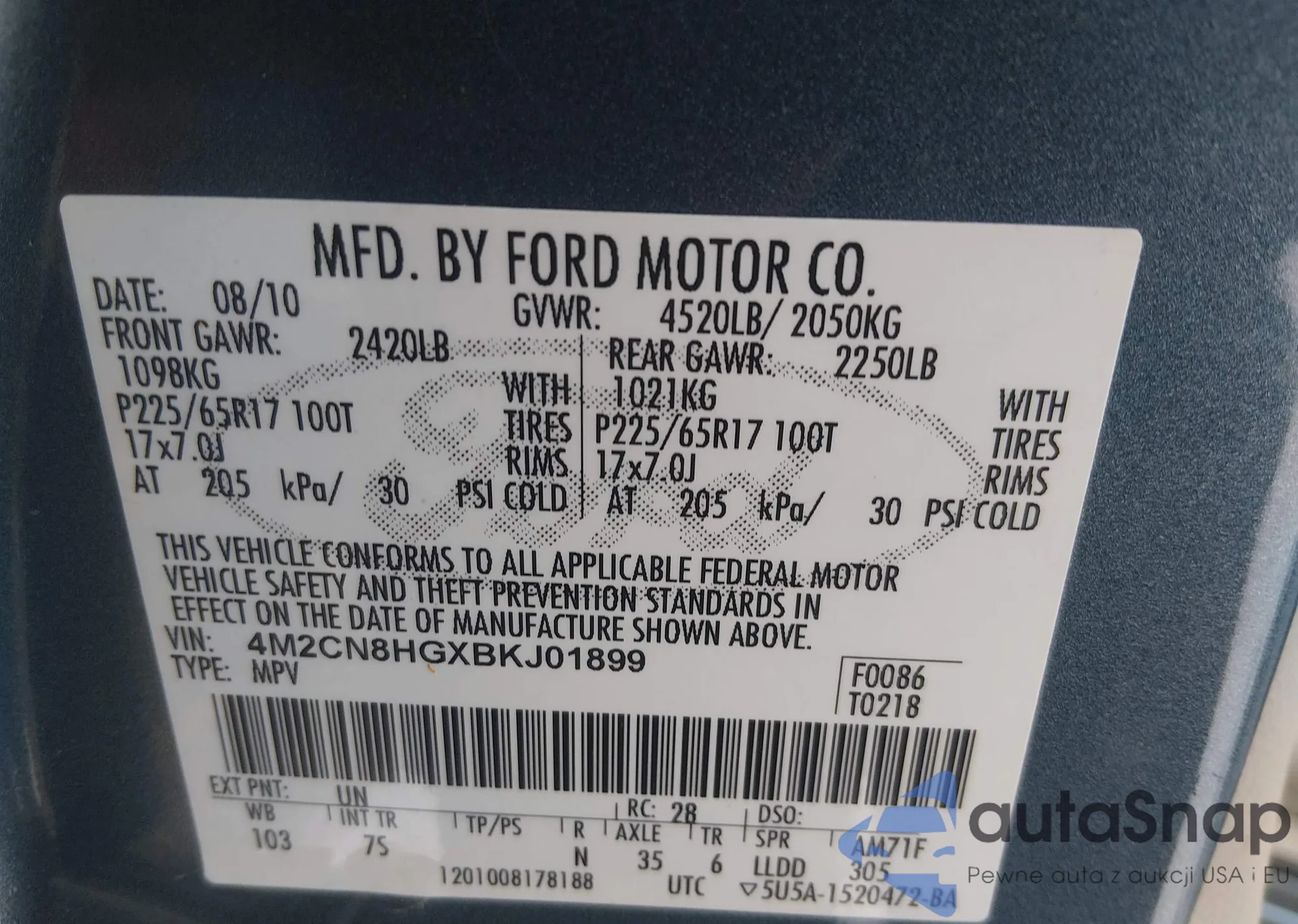 • VIN 4M2CN8HGXBKJ01899