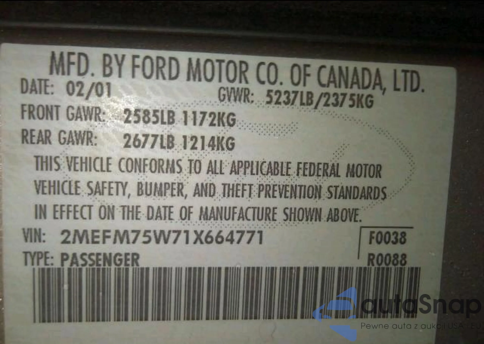 2MEFM75W71X664771