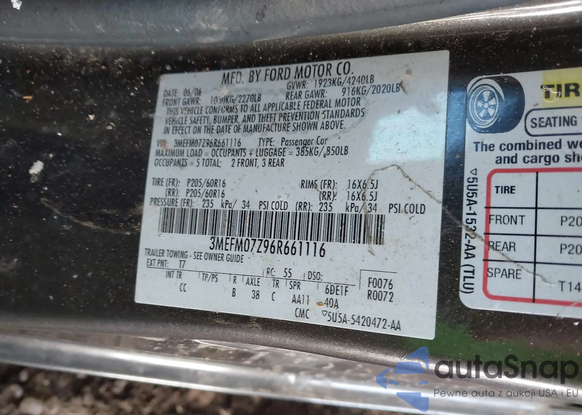 LOT: 44252895 VIN: 3MEFM07Z96R661116