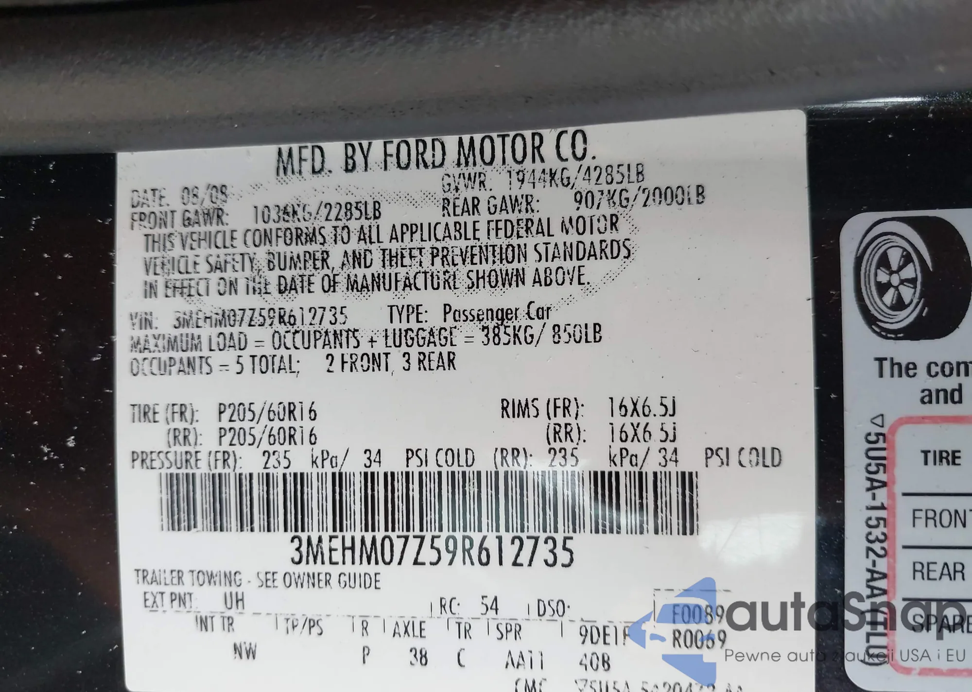 • VIN 3MEHM07Z59R612735
