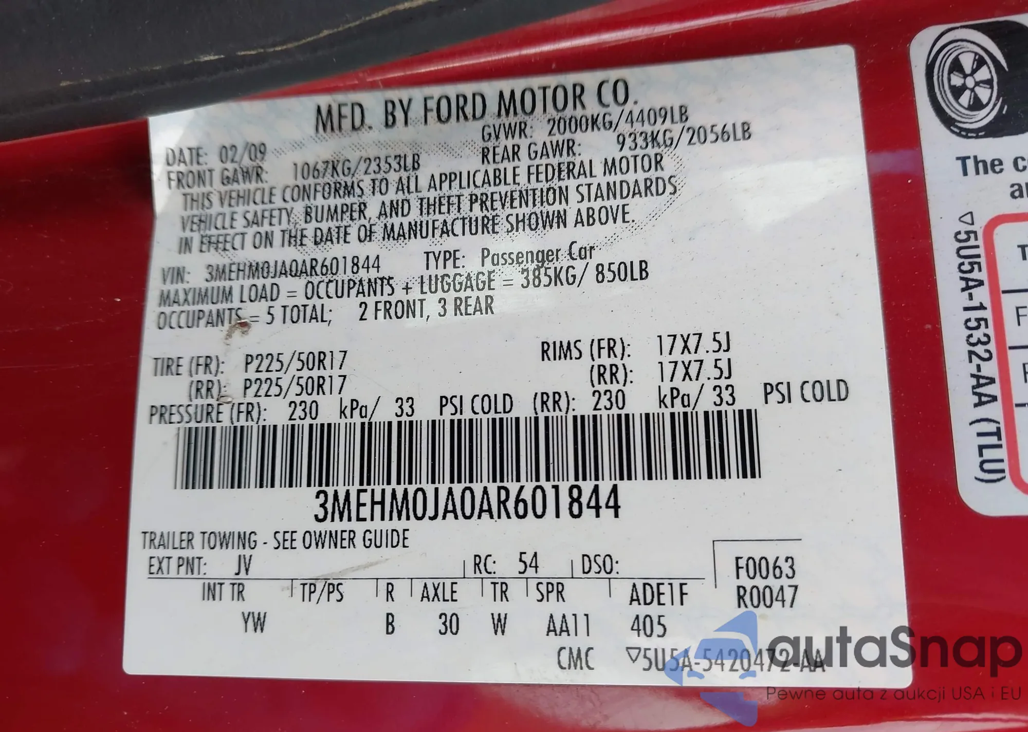 • VIN 3MEHM0JG7AR651273