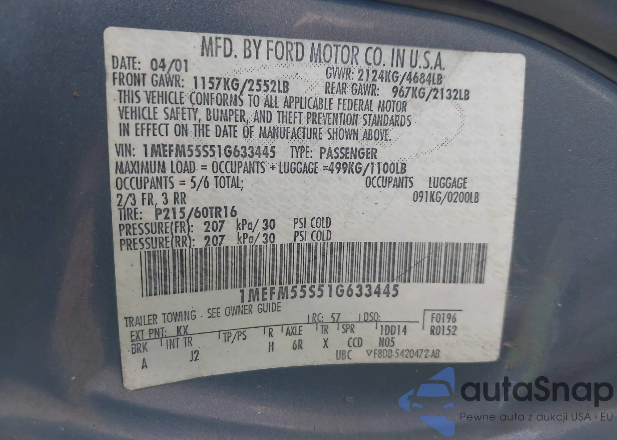 • VIN 1MEFM55S51G633445