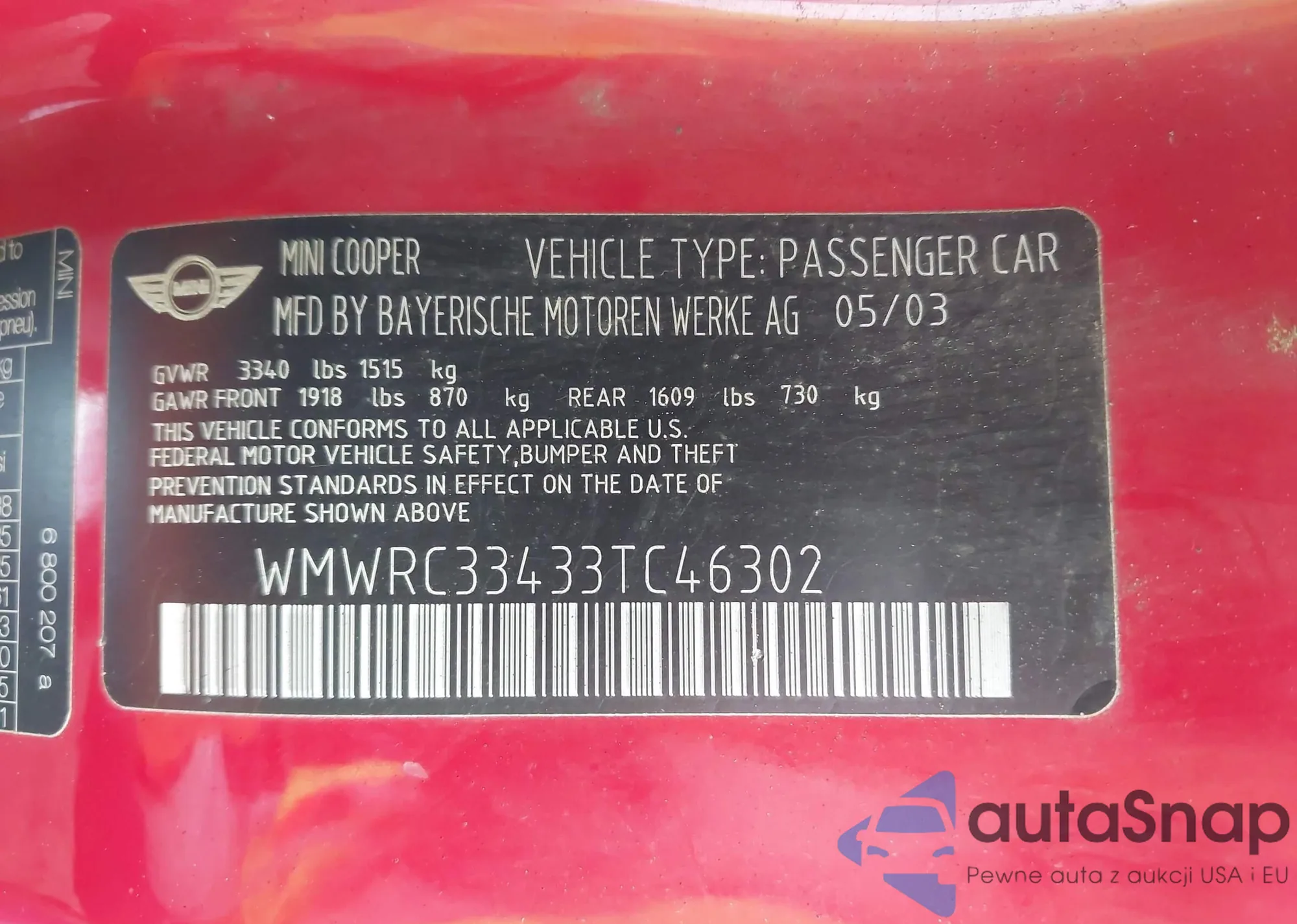 • VIN WMWRC33433TC46302
