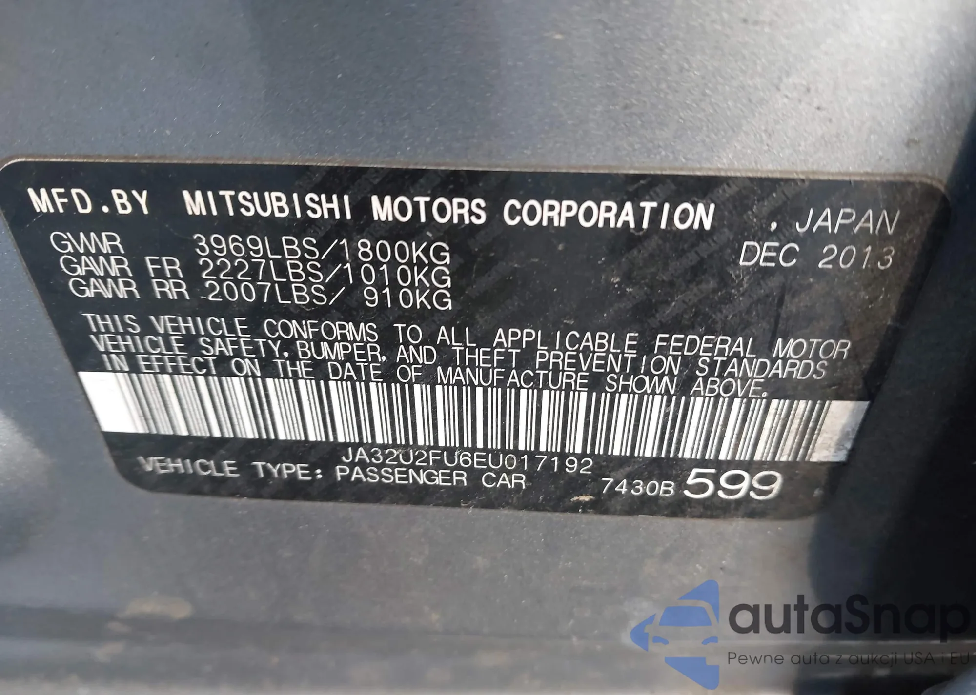 LOT: 44265192 VIN: JA32U8FW4EU021987