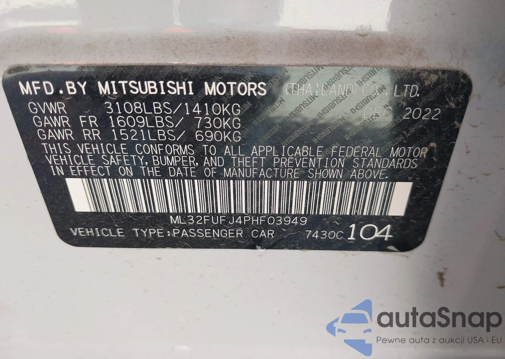 • VIN ML32FUFJ4PHF03949
